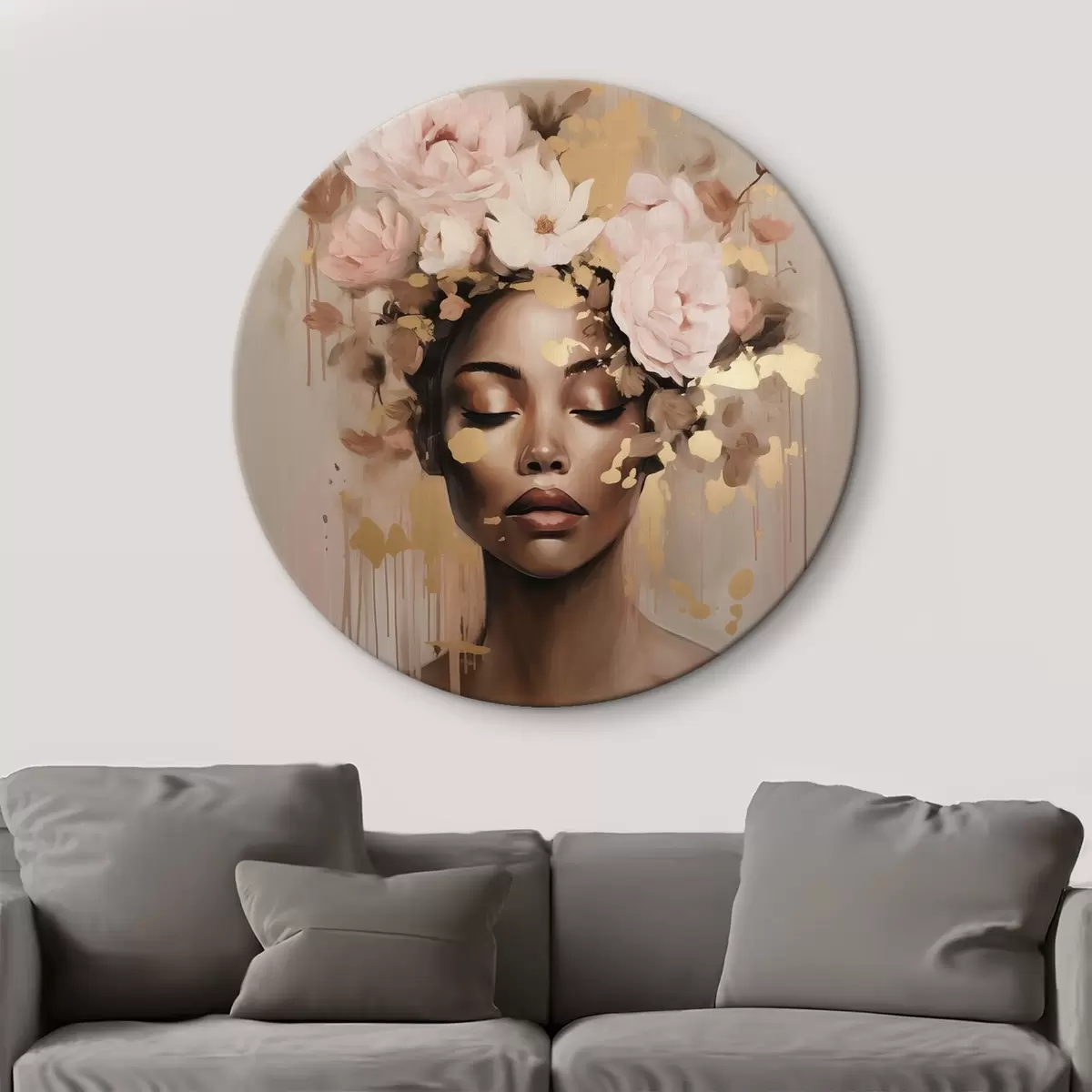 Кругла картина Дівчина з квітковою короною Nr r42814