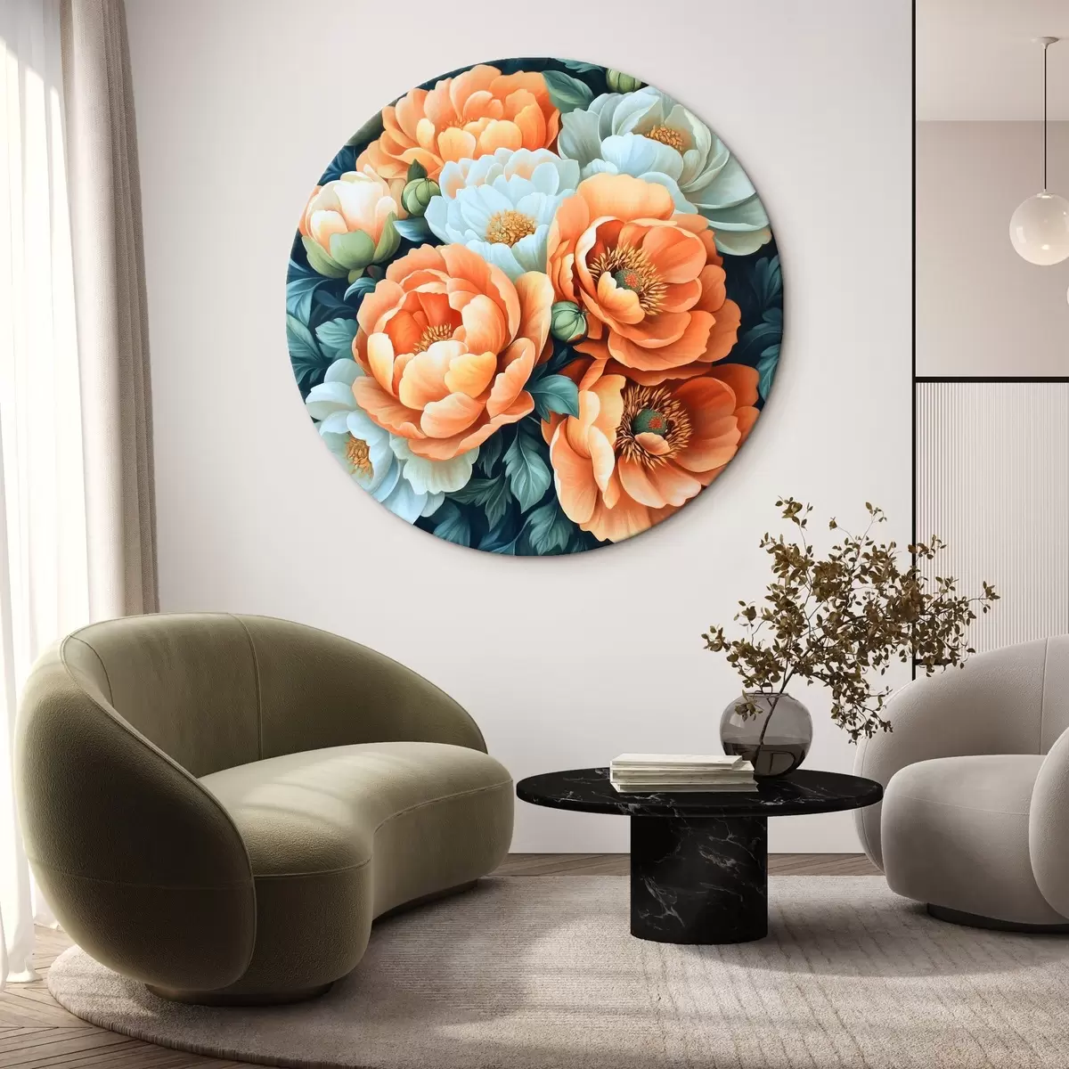 Кругла картина Білі та помаранчеві квіти Nr r42860