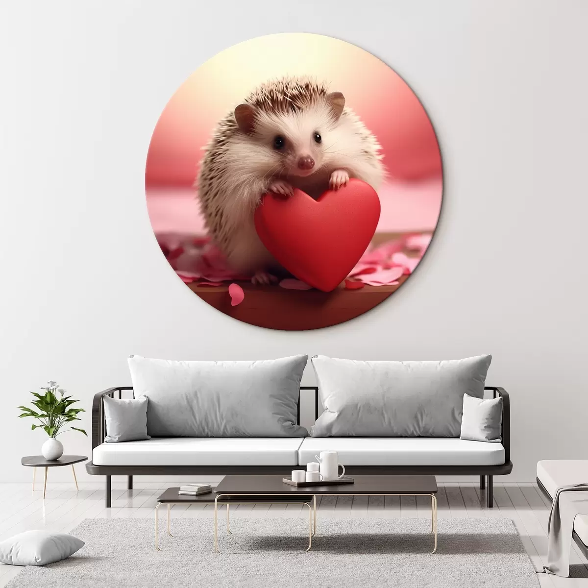 Кругла картина Маленький їжачок тримає серце r42867