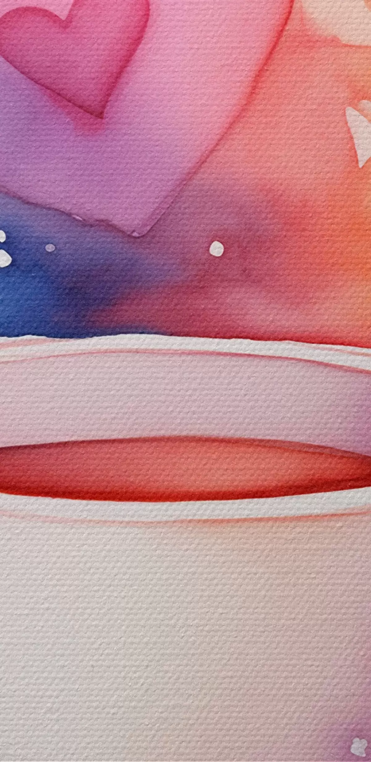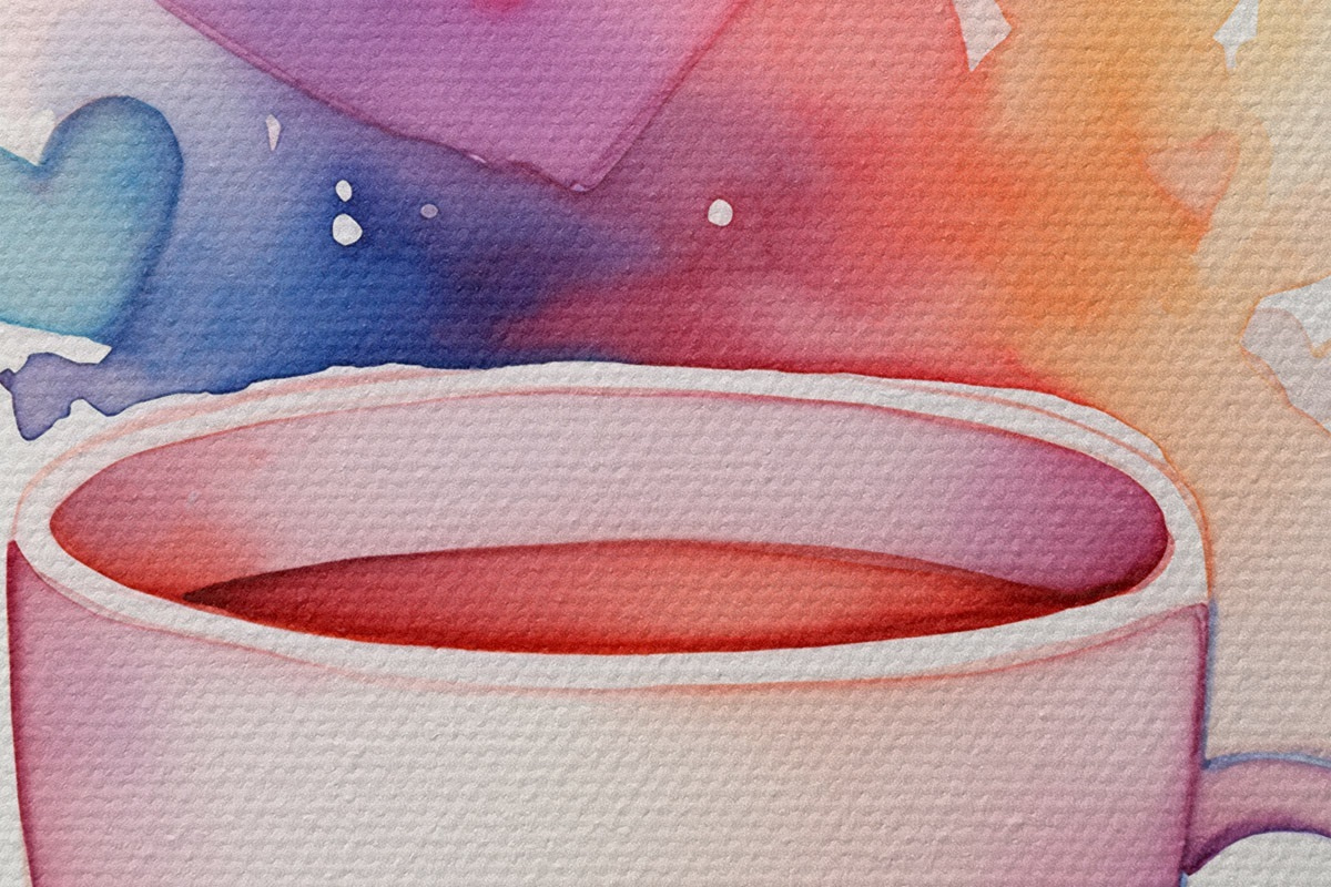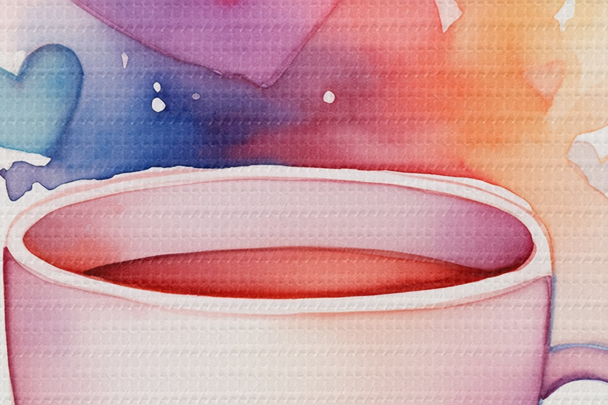 Кругла картина Чашка на тлі акварельних сердець Nr r42869