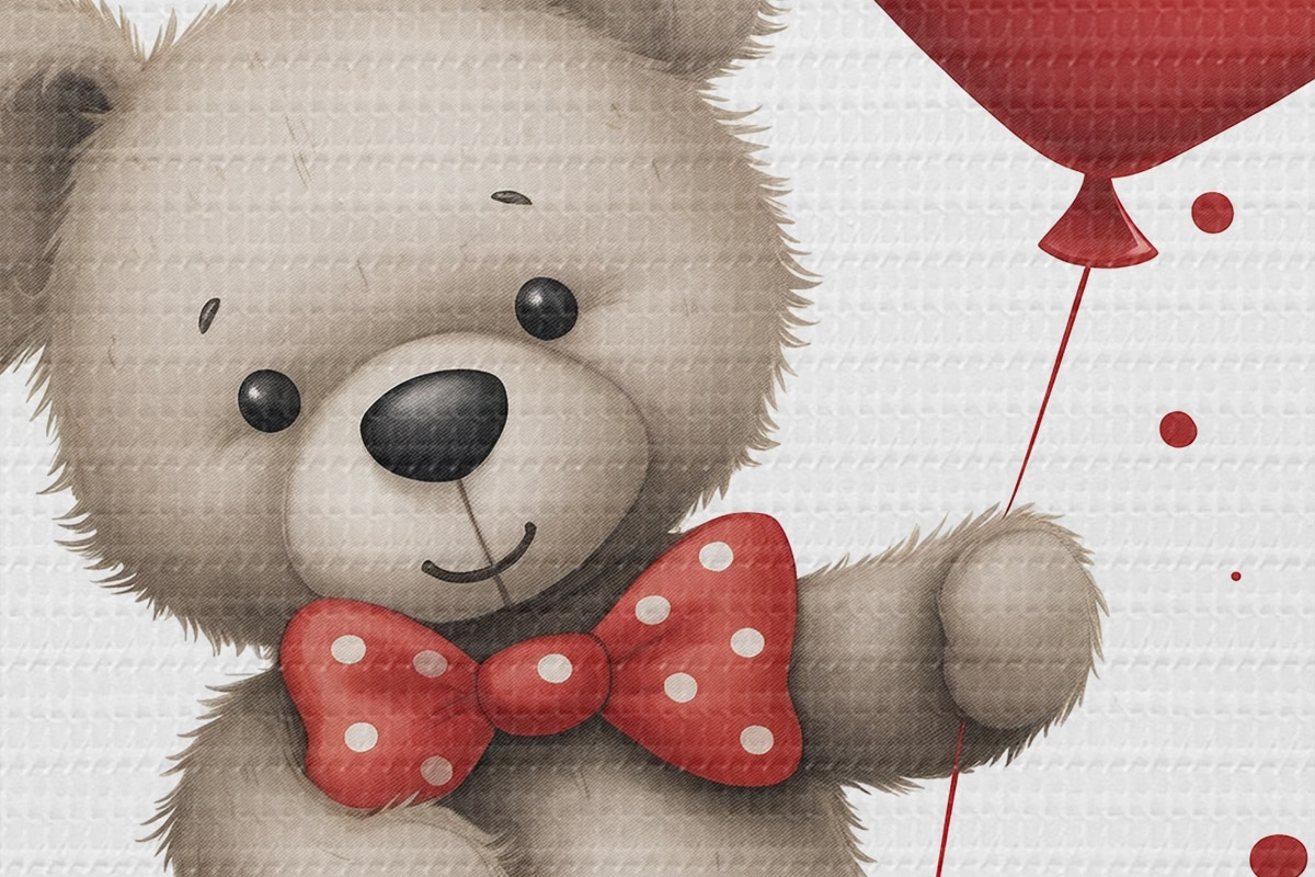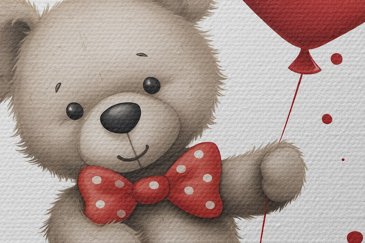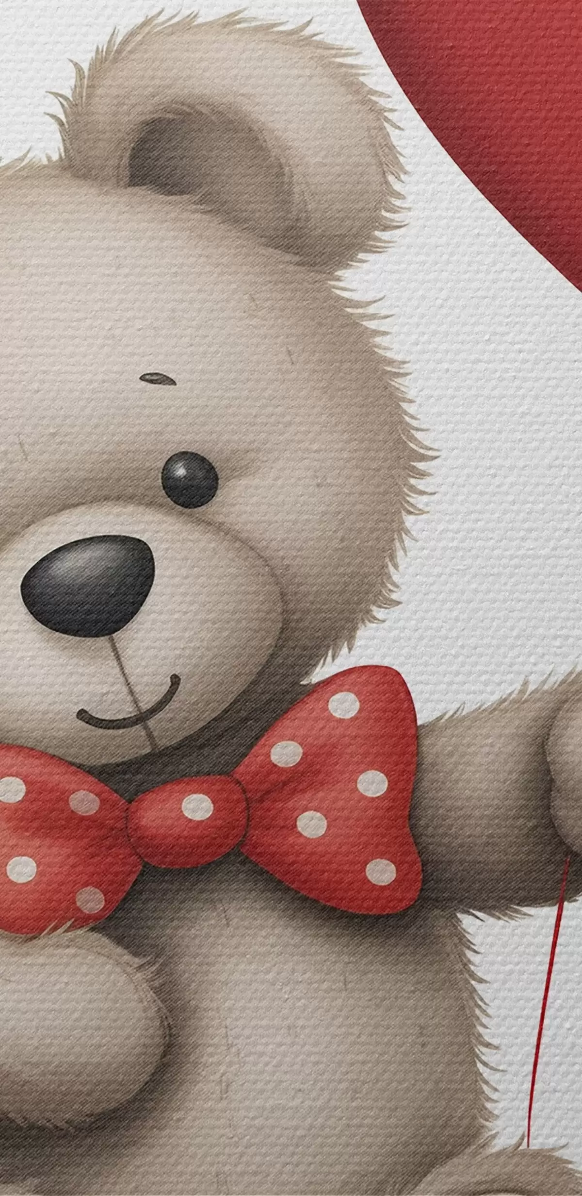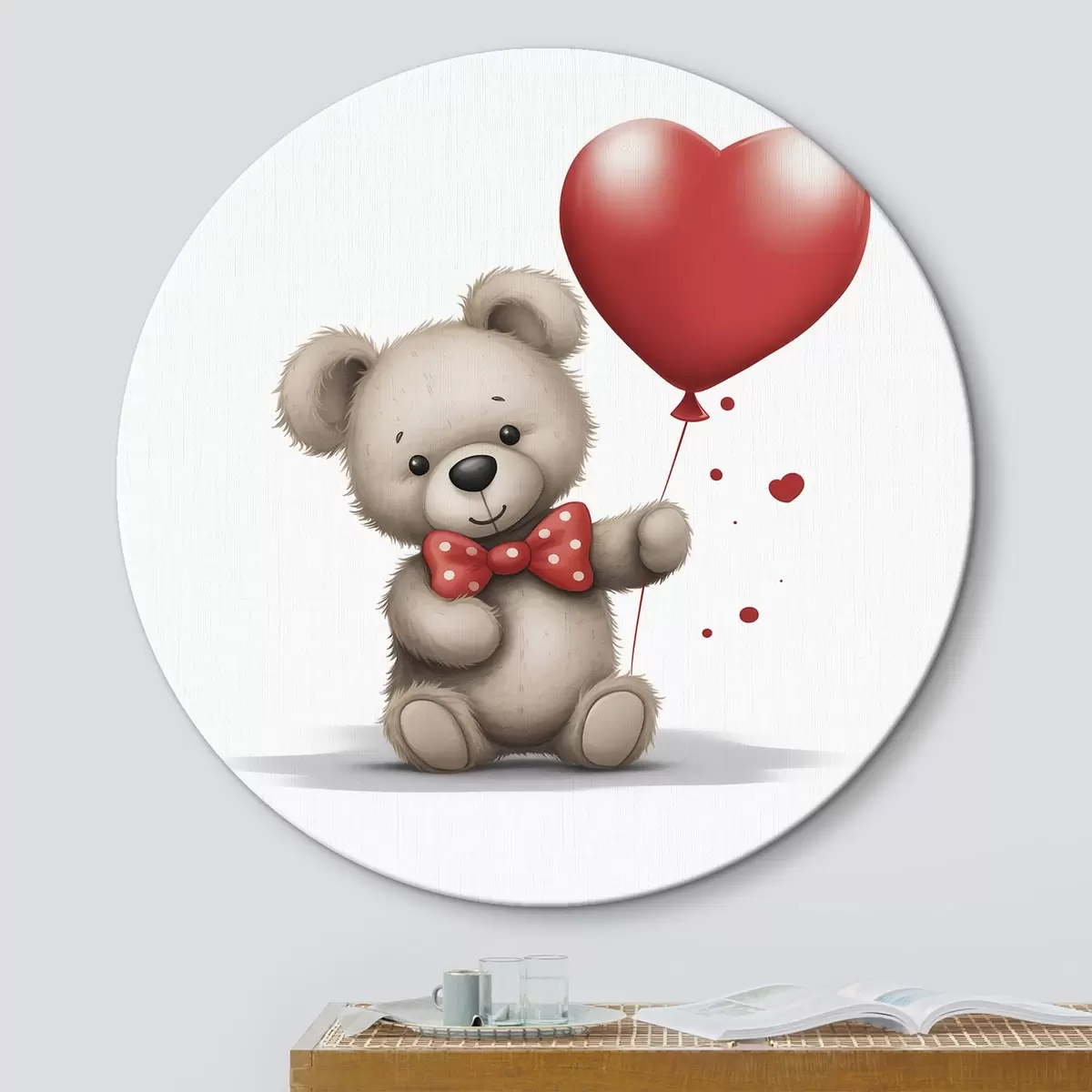 Кругла картина Милий ведмедик з червоною повітряною кулькою з серцем Nr r42879
