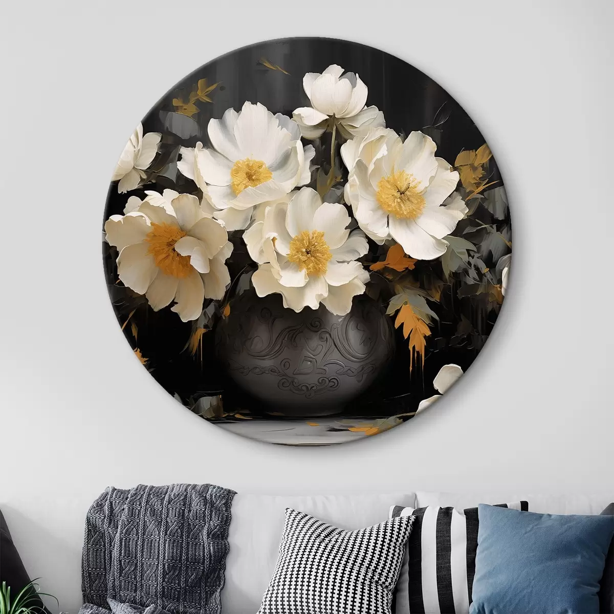 Кругла картина Білі півонії у вазі r42884