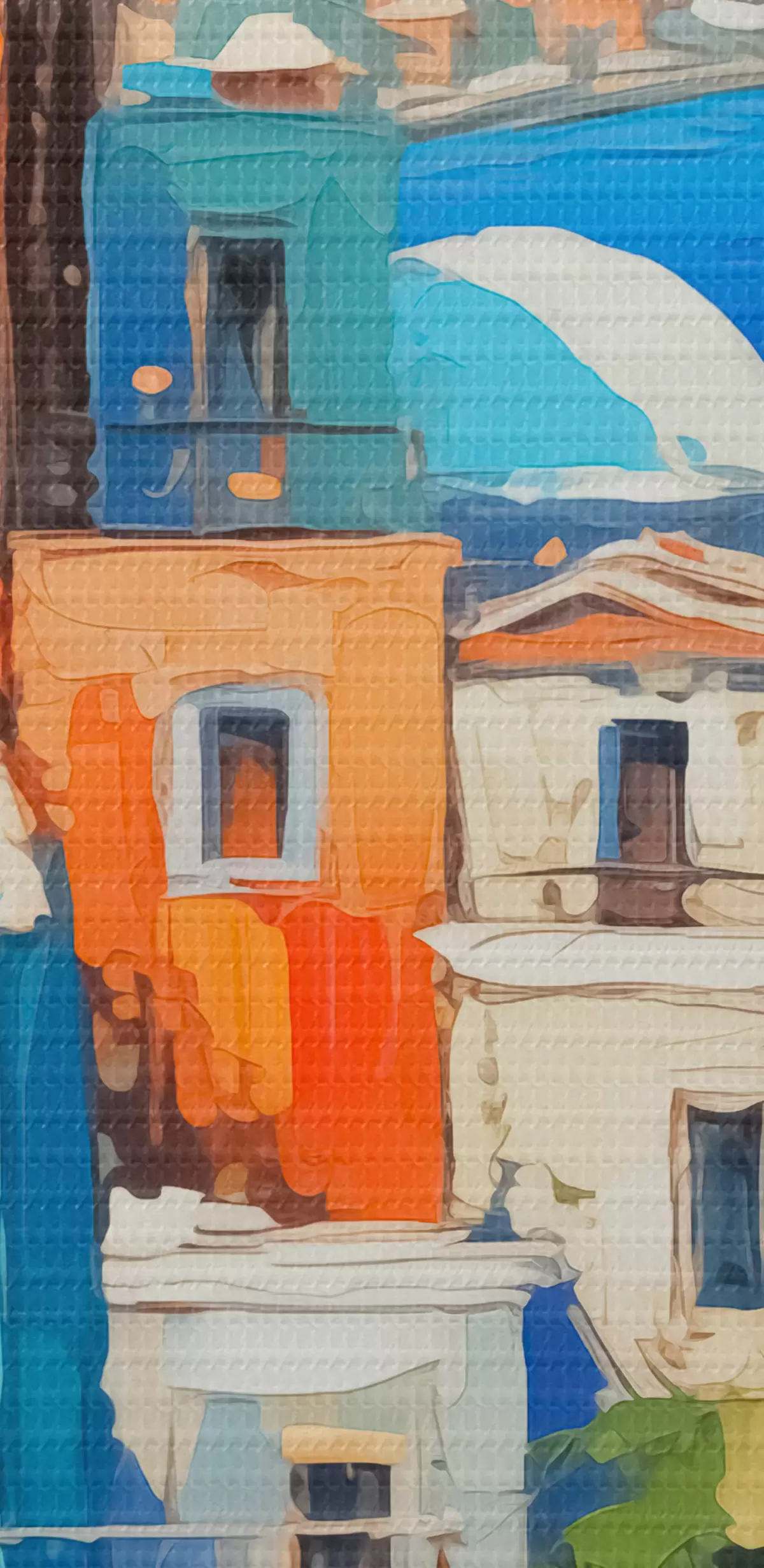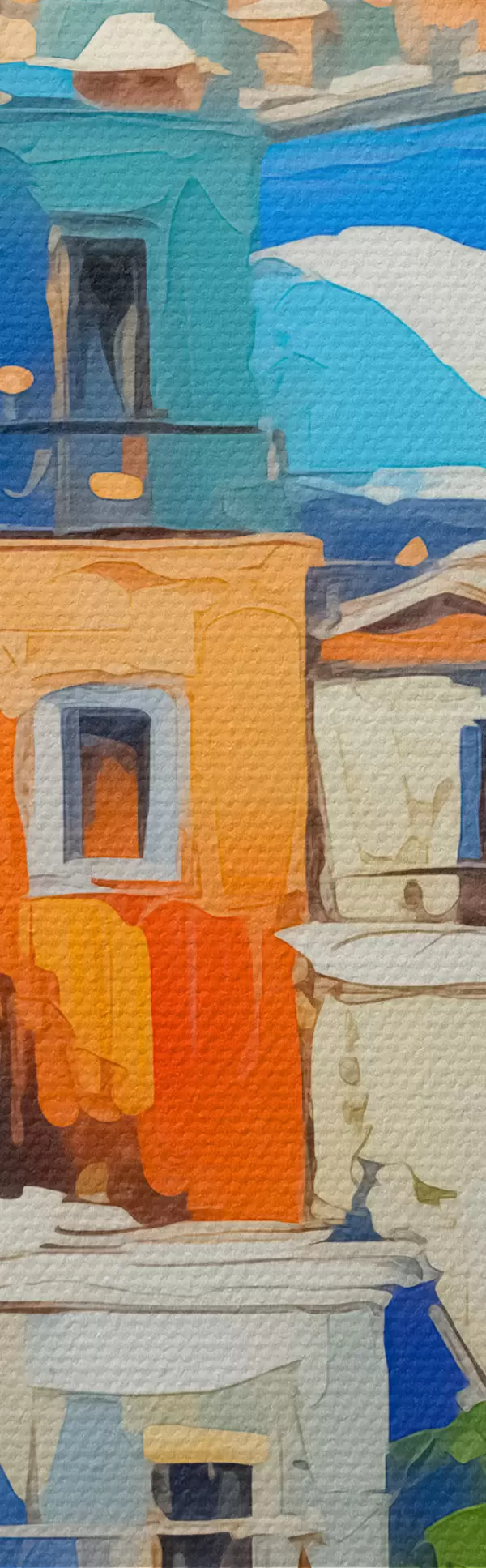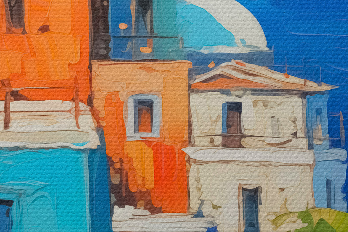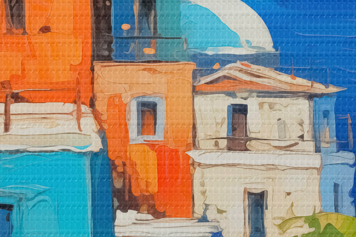 Кругла картина Будинки на березі моря імітують мазки живопису Nr r42899