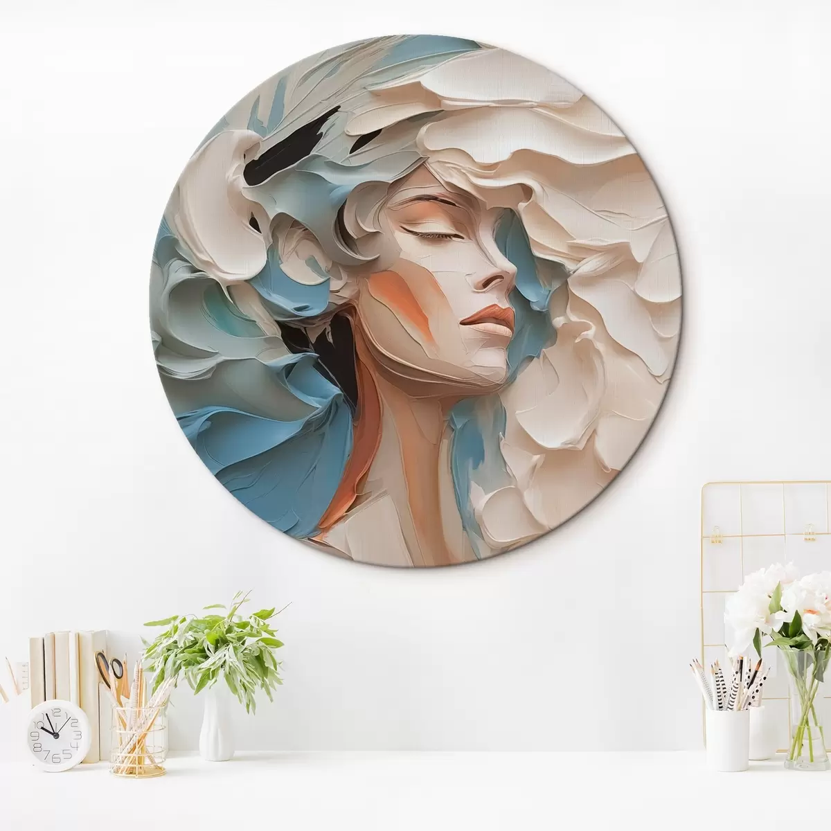 Кругла картина Портрет дівчини, абстрактна імітація живопису r42904