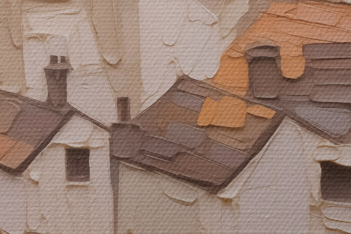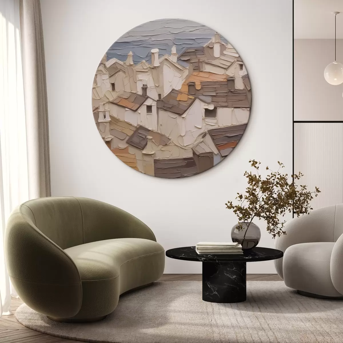 Кругла картина Дахи будинків - абстрактна імітація живопису Nr r42910