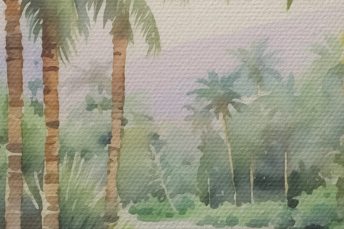 Кругла картина Акварель з імітацією тропічного пейзажу Nr r42912