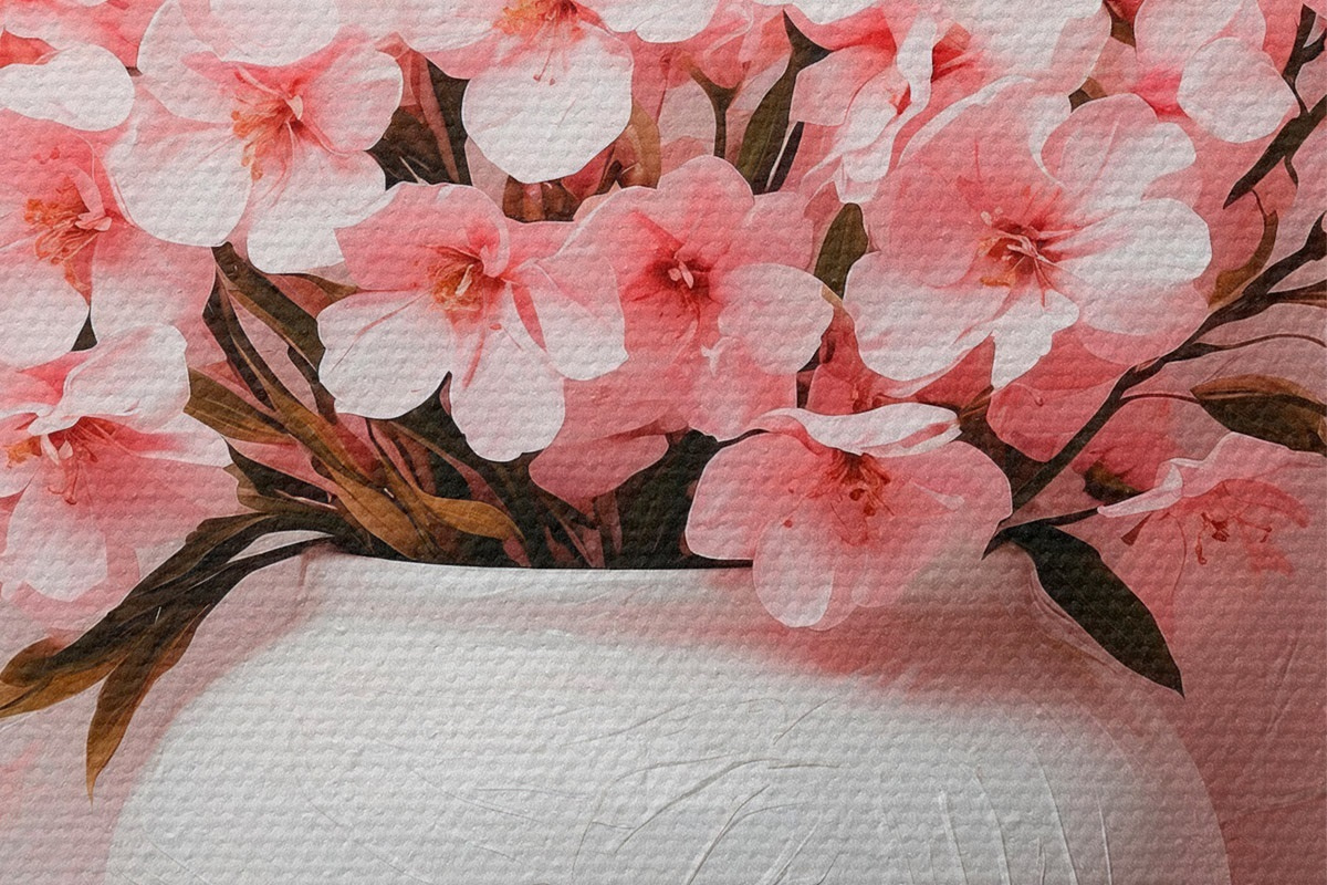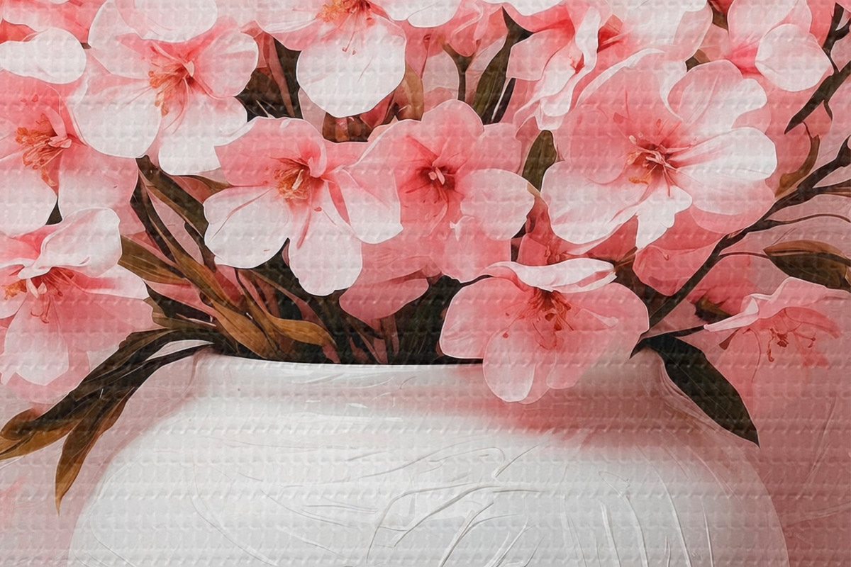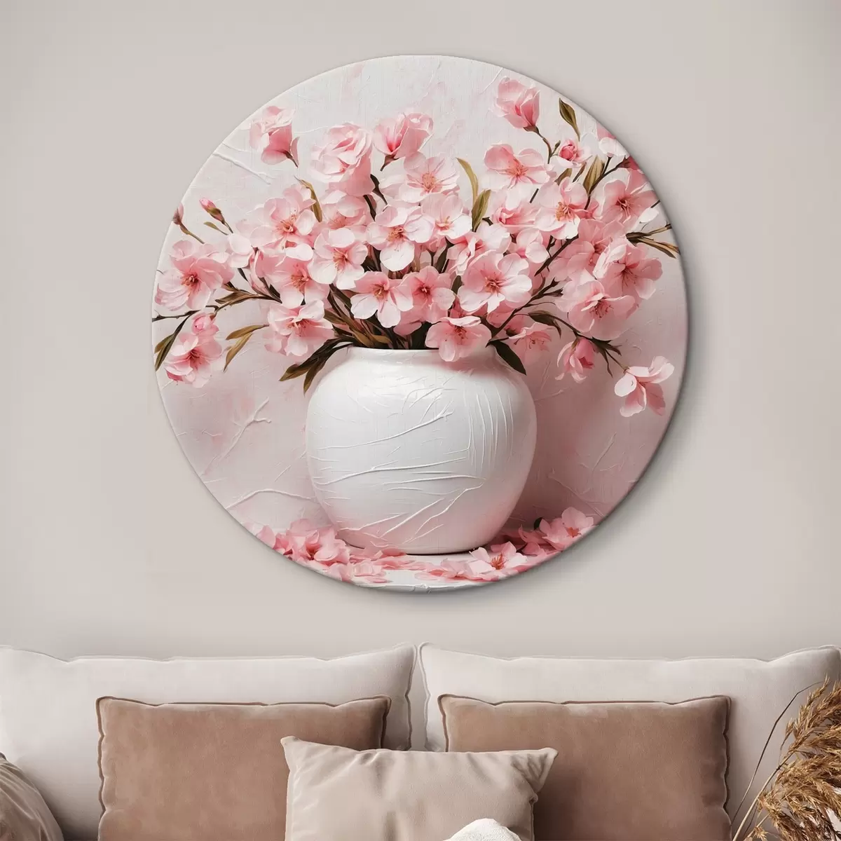 Кругла картина Рожеві квіти у білій вазі Nr r42915