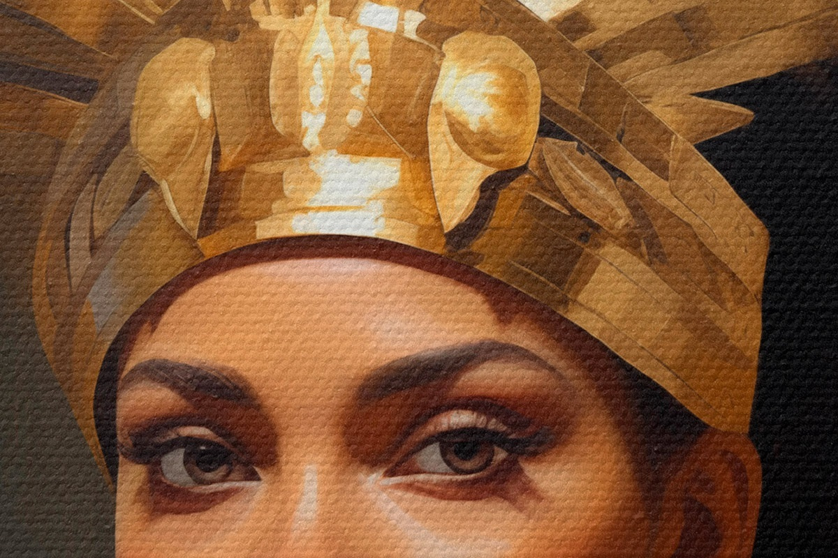 Кругла картина Портрет жінки у величному головному уборі та традиційних прикрасах Nr r42931