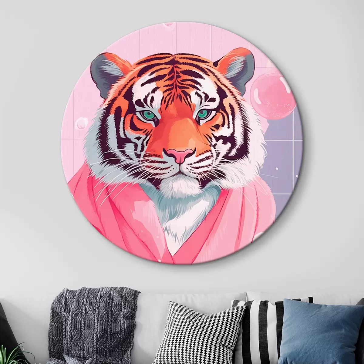 Кругла картина Тигр у рожевому рушнику r42942