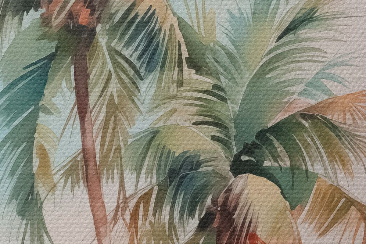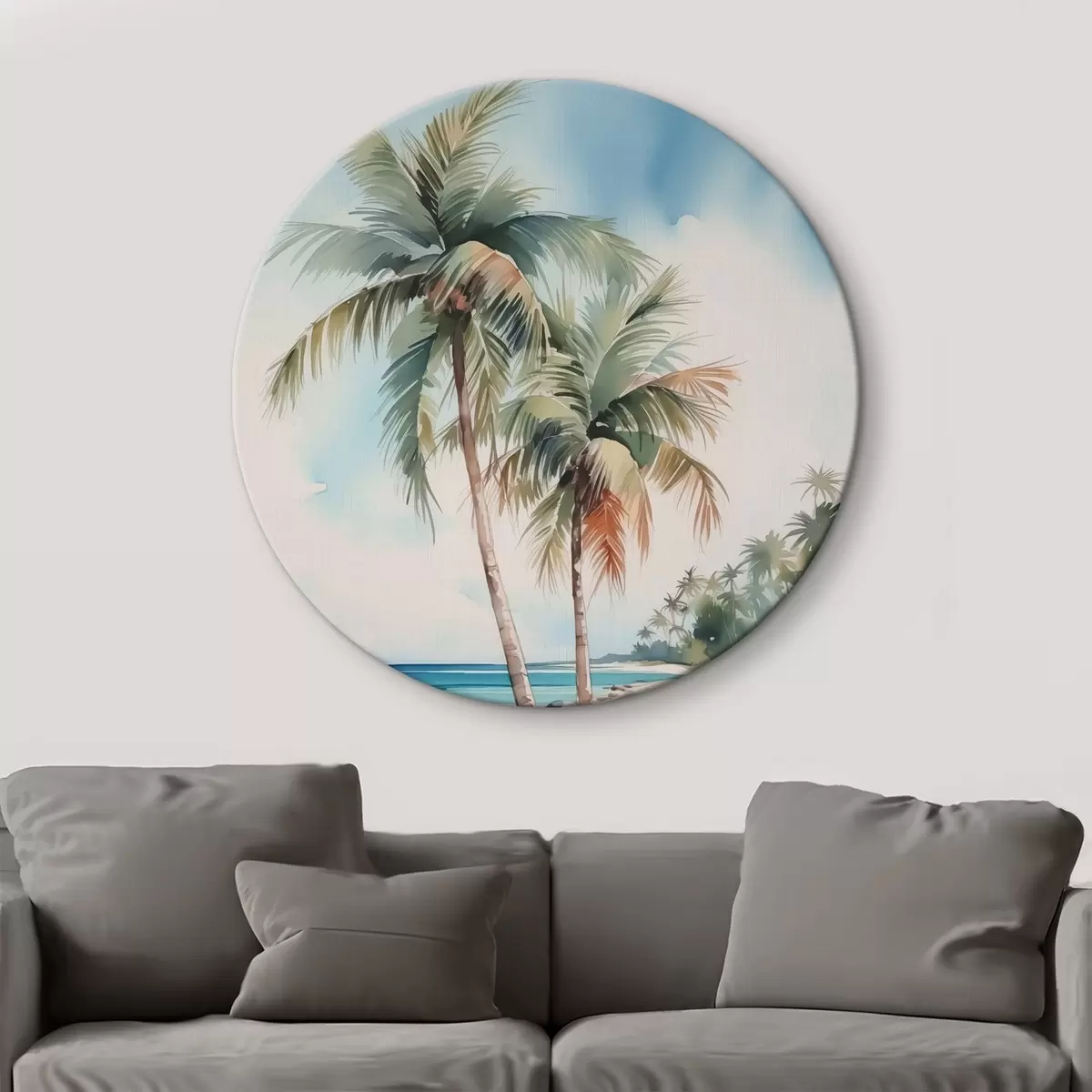 Кругла картина Пальми на березі моря, імітація акварелі Nr r42958