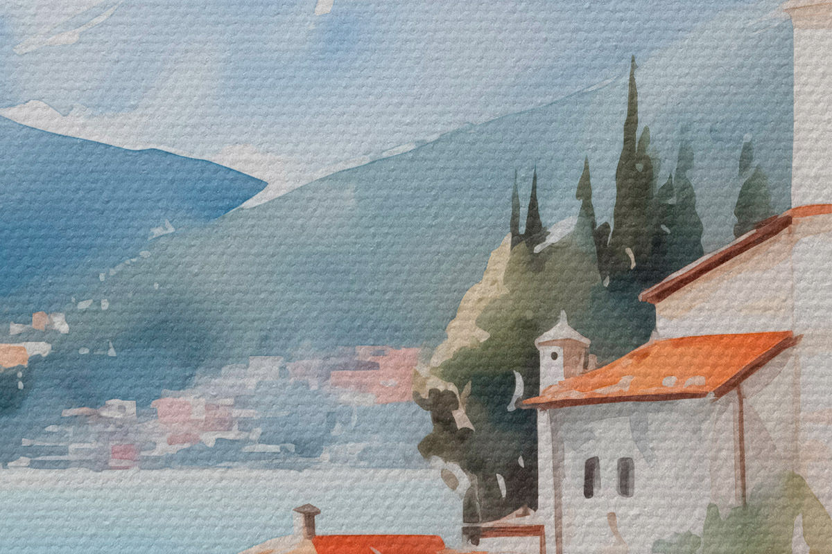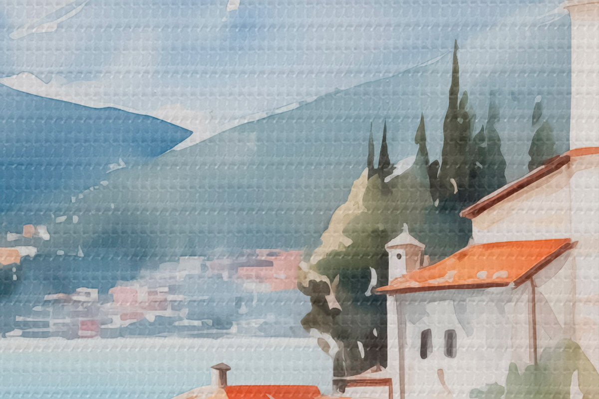 Кругла картина Церква на березі моря з горами на задньому плані Nr r42962
