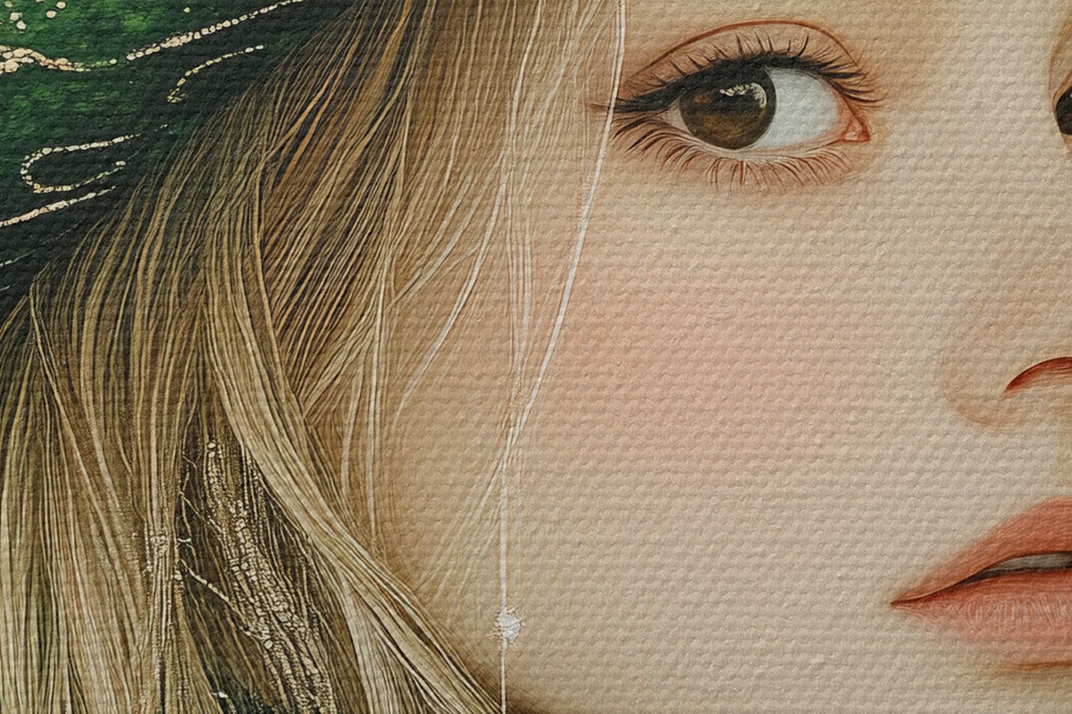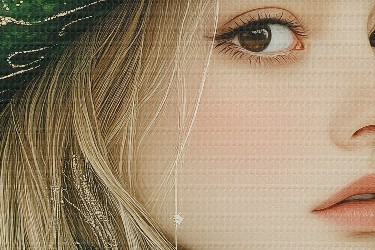 Кругла картина Портрет дівчини в зеленому капелюсі Nr r42982