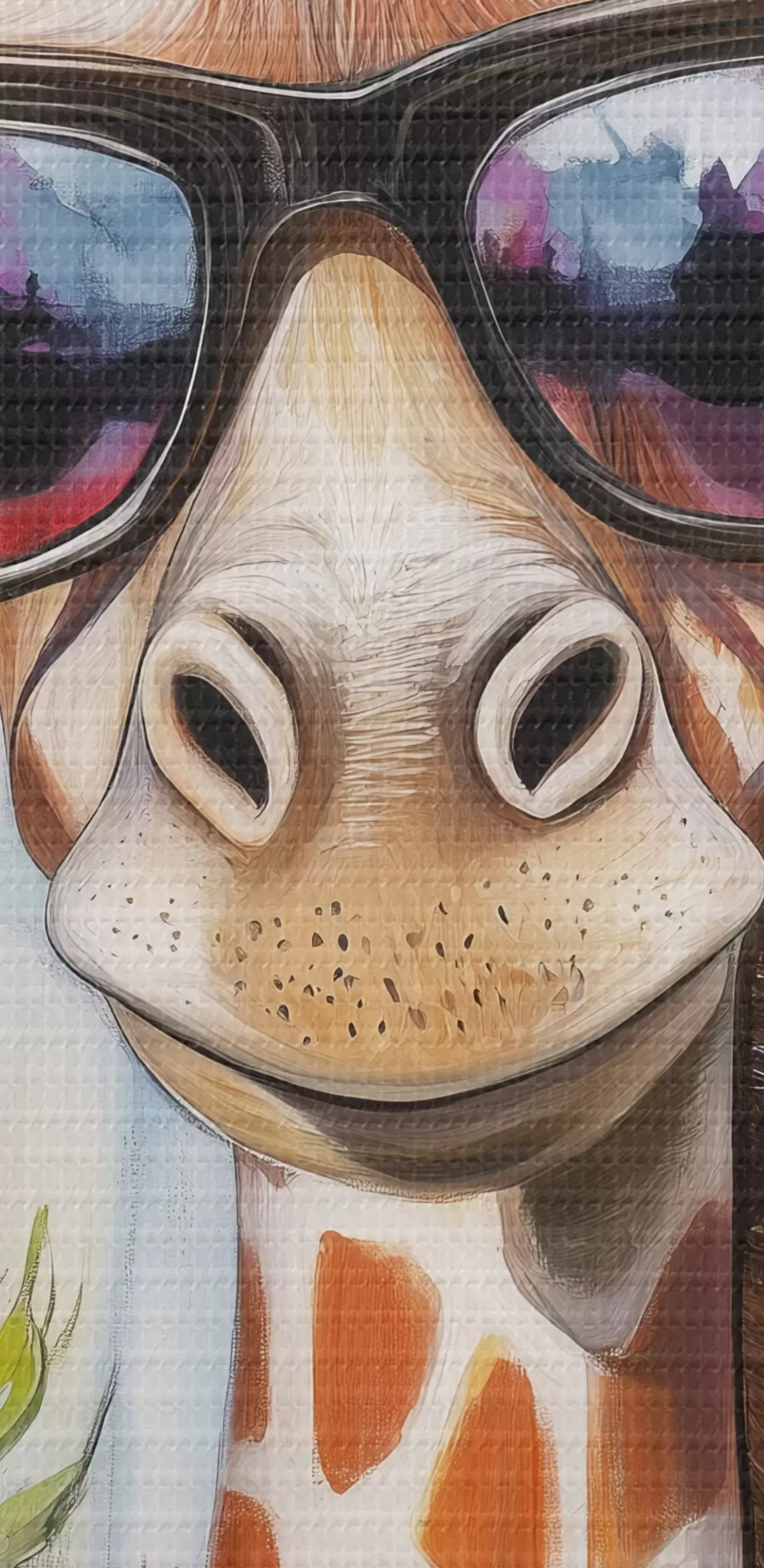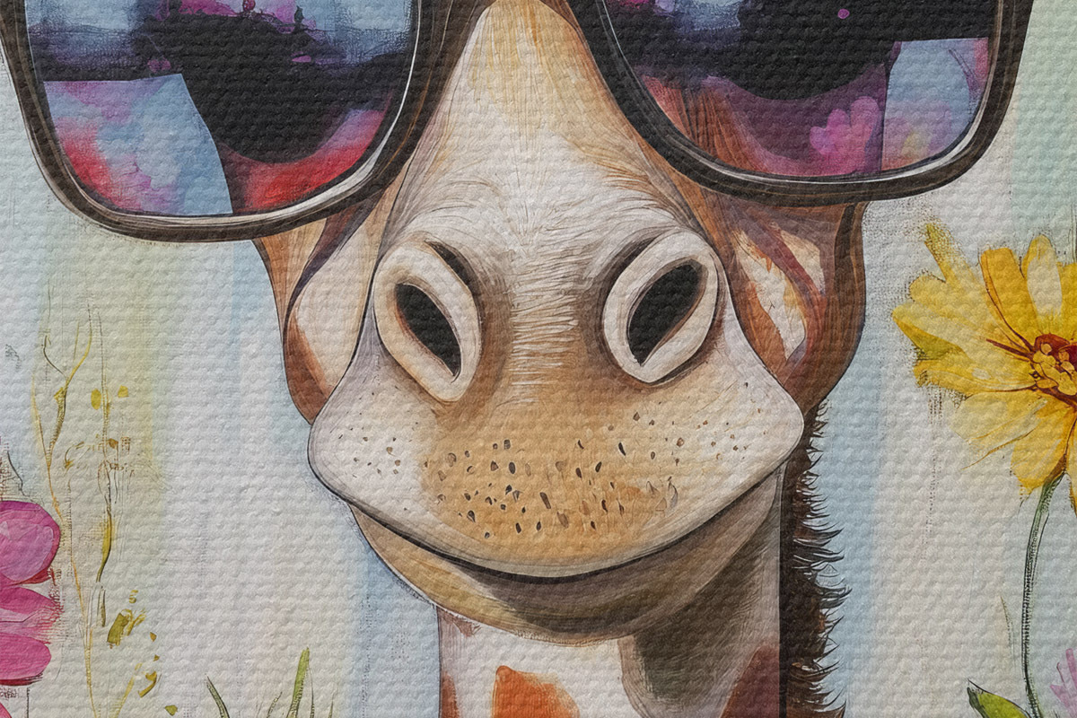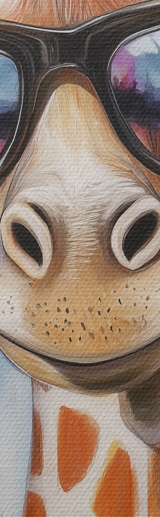 Кругла картина Жираф в окулярах біля квітів Nr r42991