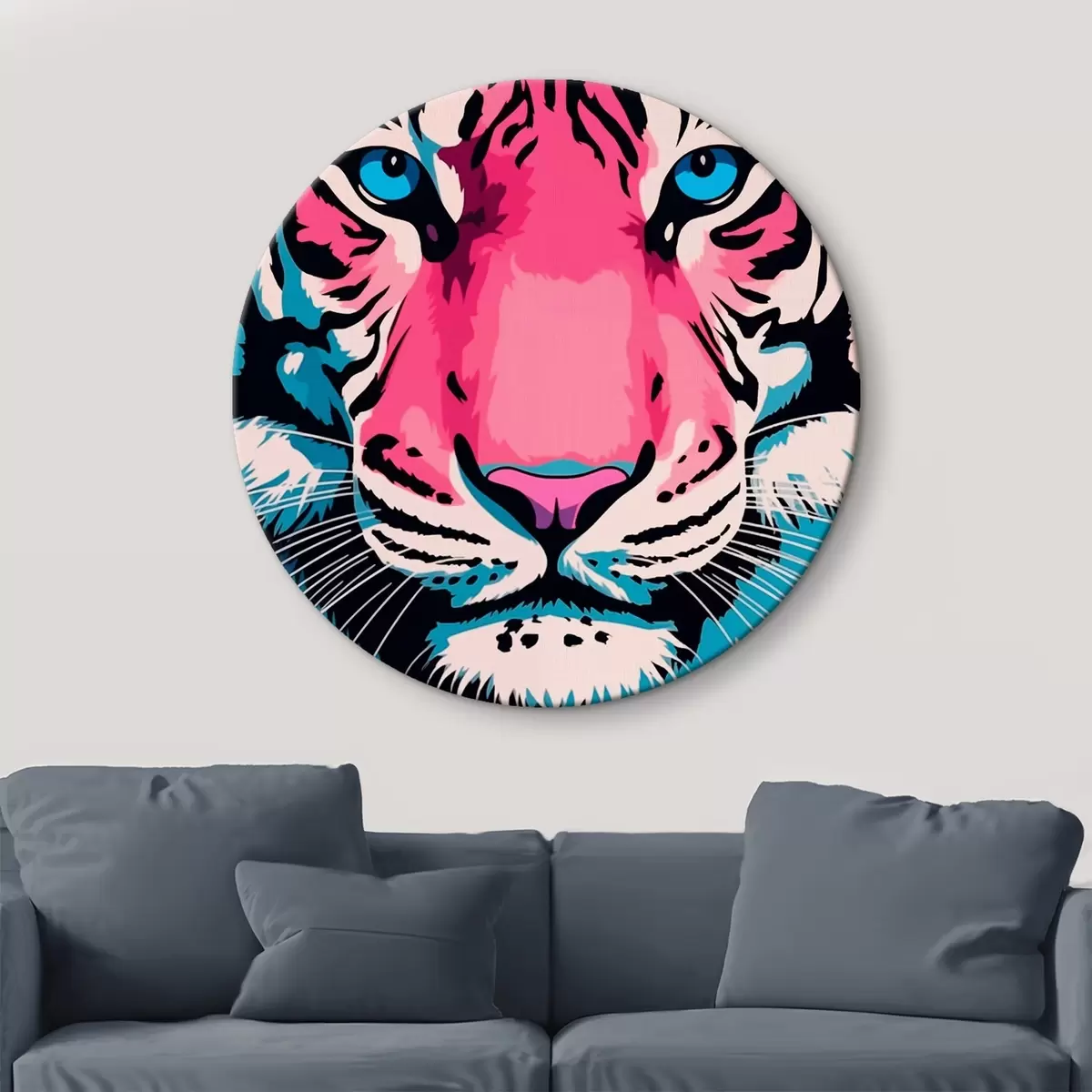Кругла картина Стилізований портрет тигра в яскравих кольорах Nr r43007