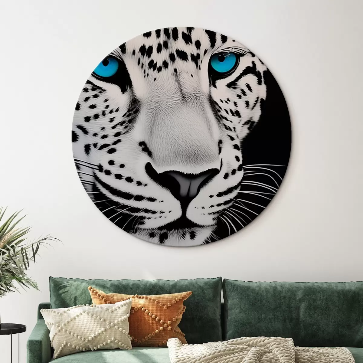 Кругла картина Чорно-білий портрет леопарда з блакитними очима Nr r43008