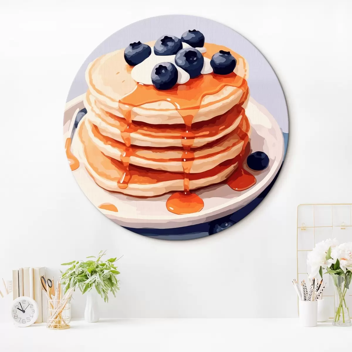 Кругла картина Млинці з сиропом та чорницею на тарілці Nr r43009