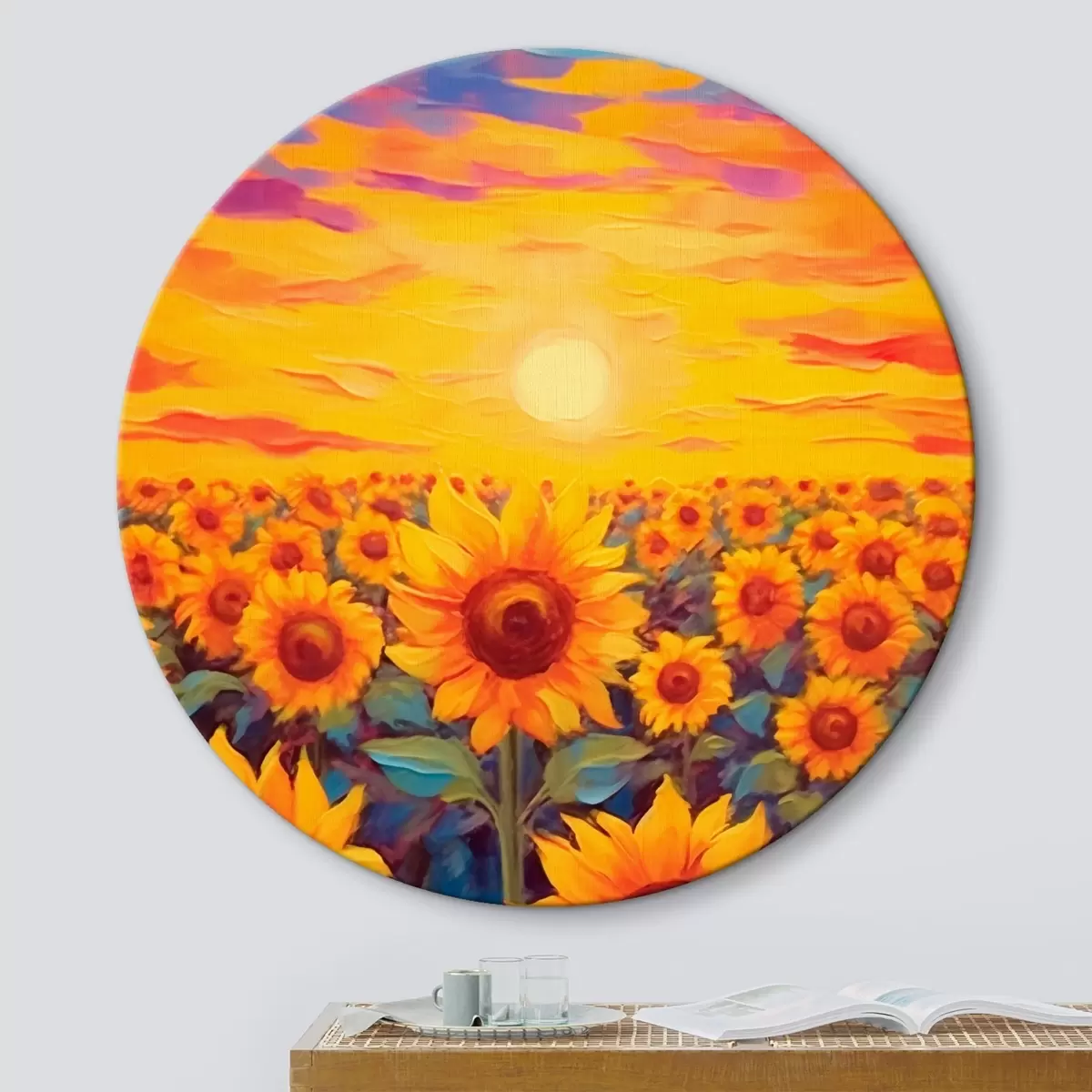 Кругла картина Соняшникове поле на заході сонця Nr r43010