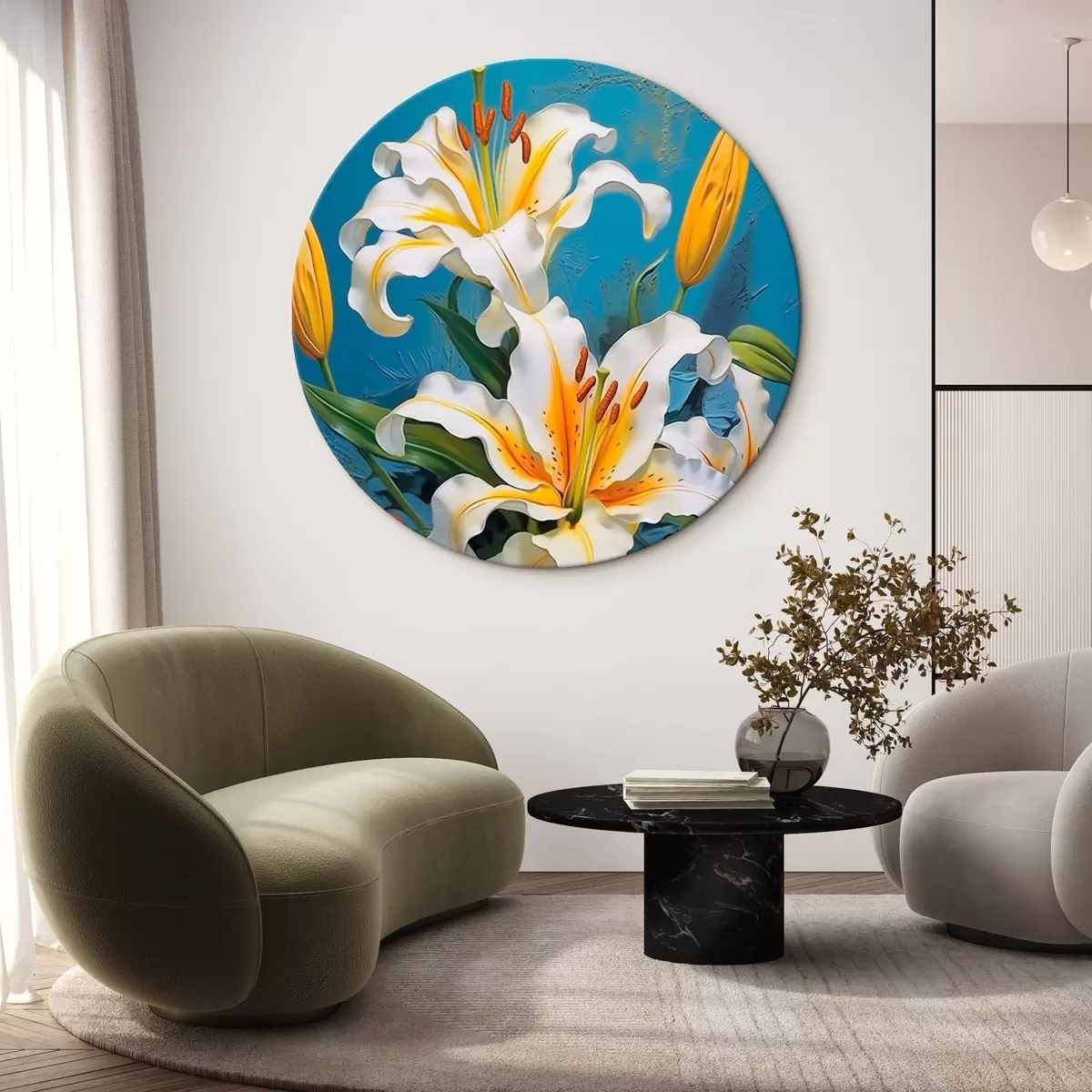 Кругла картина Білі лілії на синьому тлі Nr r43018