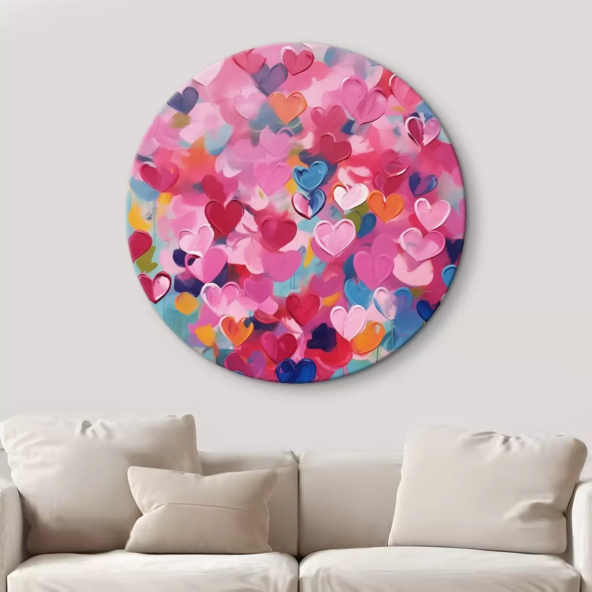 Кругла картина Кольорові серця, імітація фарби Nr r43033