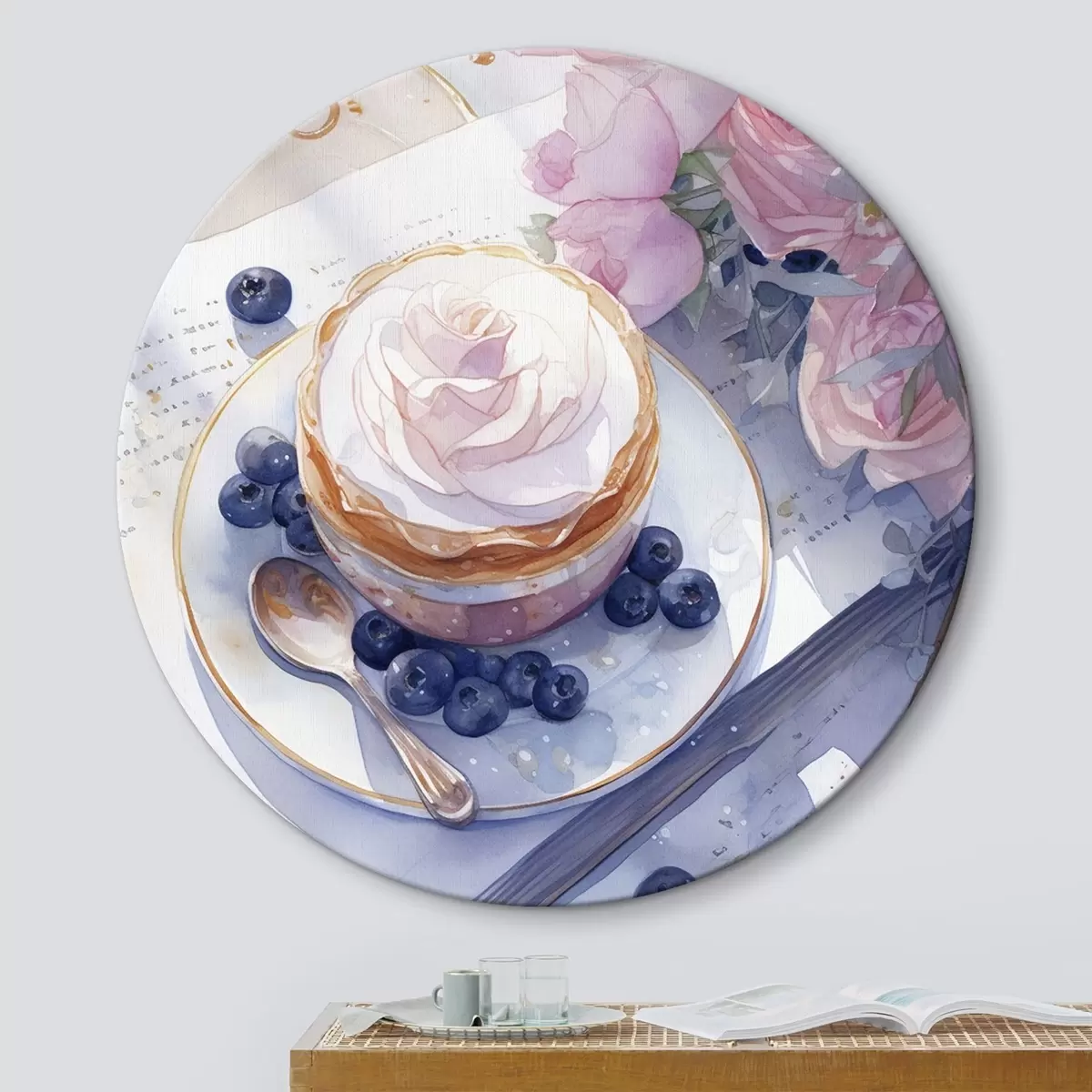 Кругла картина Чорничний кекс, стиль бохо, акварель, рожеві троянди, поетичний Nr r43053