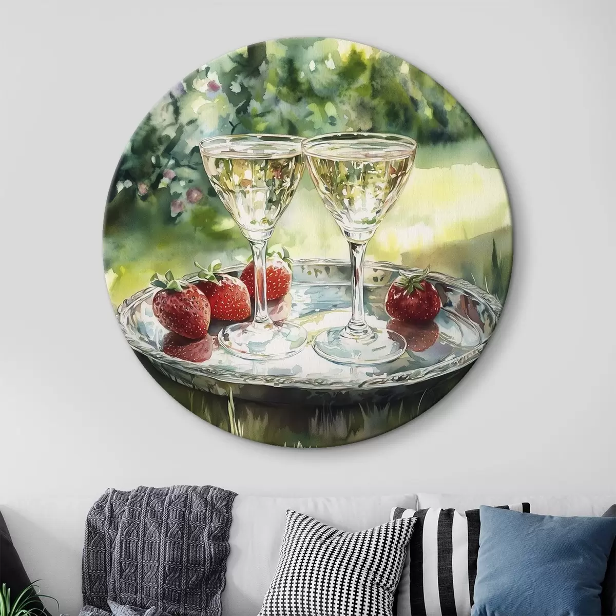 Кругла картина Літній пікнік з шампанським і полуницею, акварельний малюнок Nr r43055
