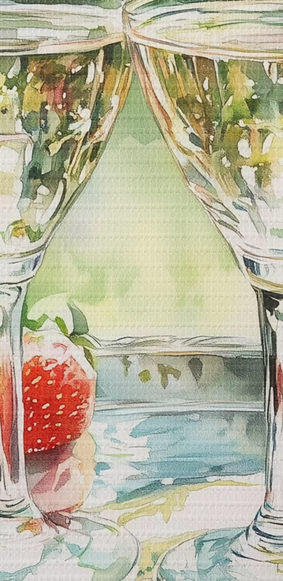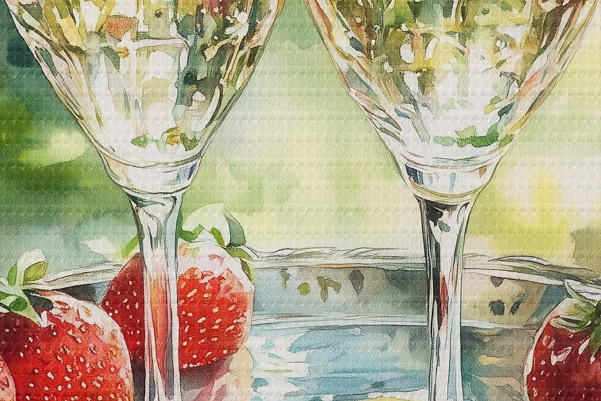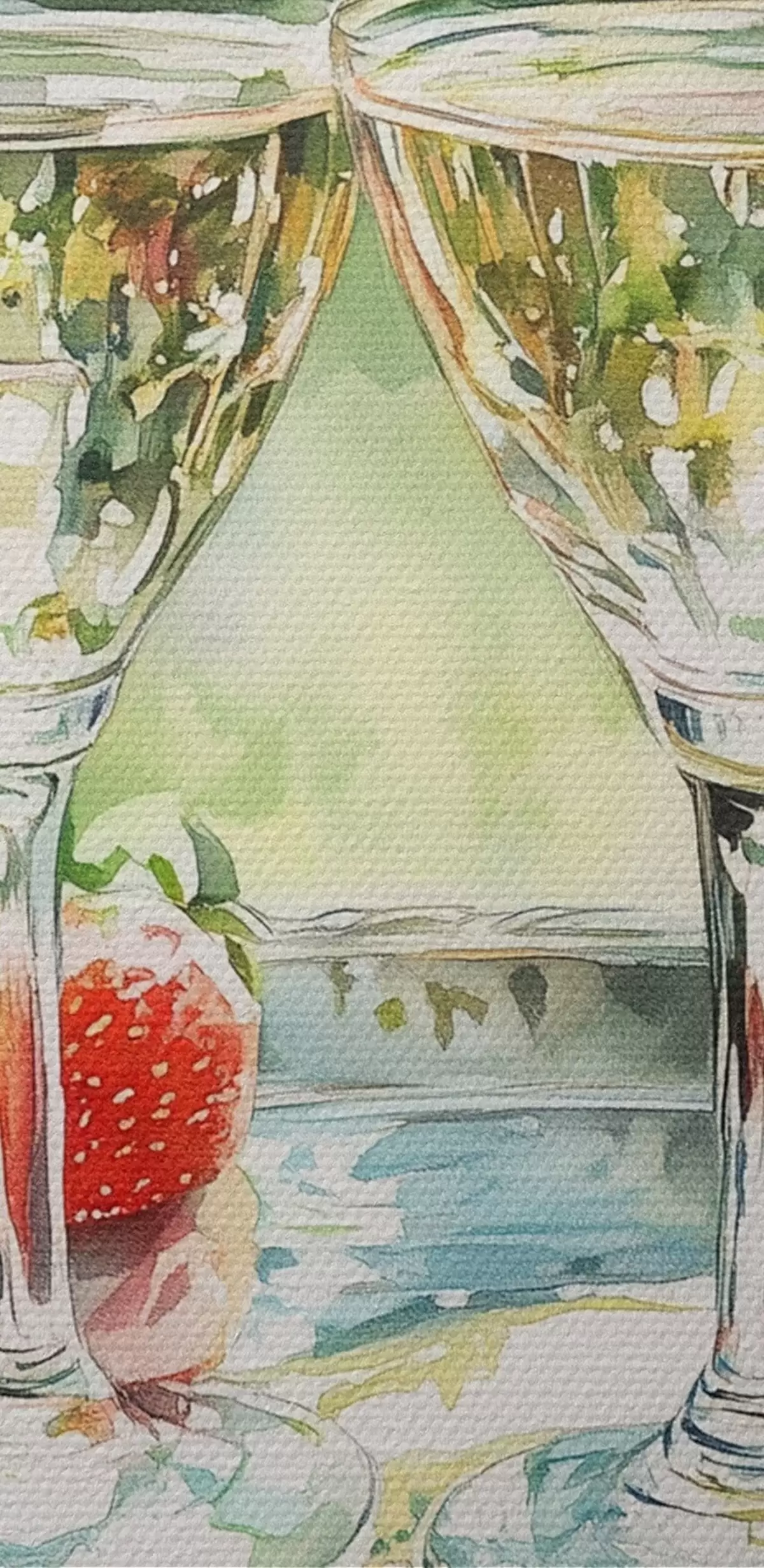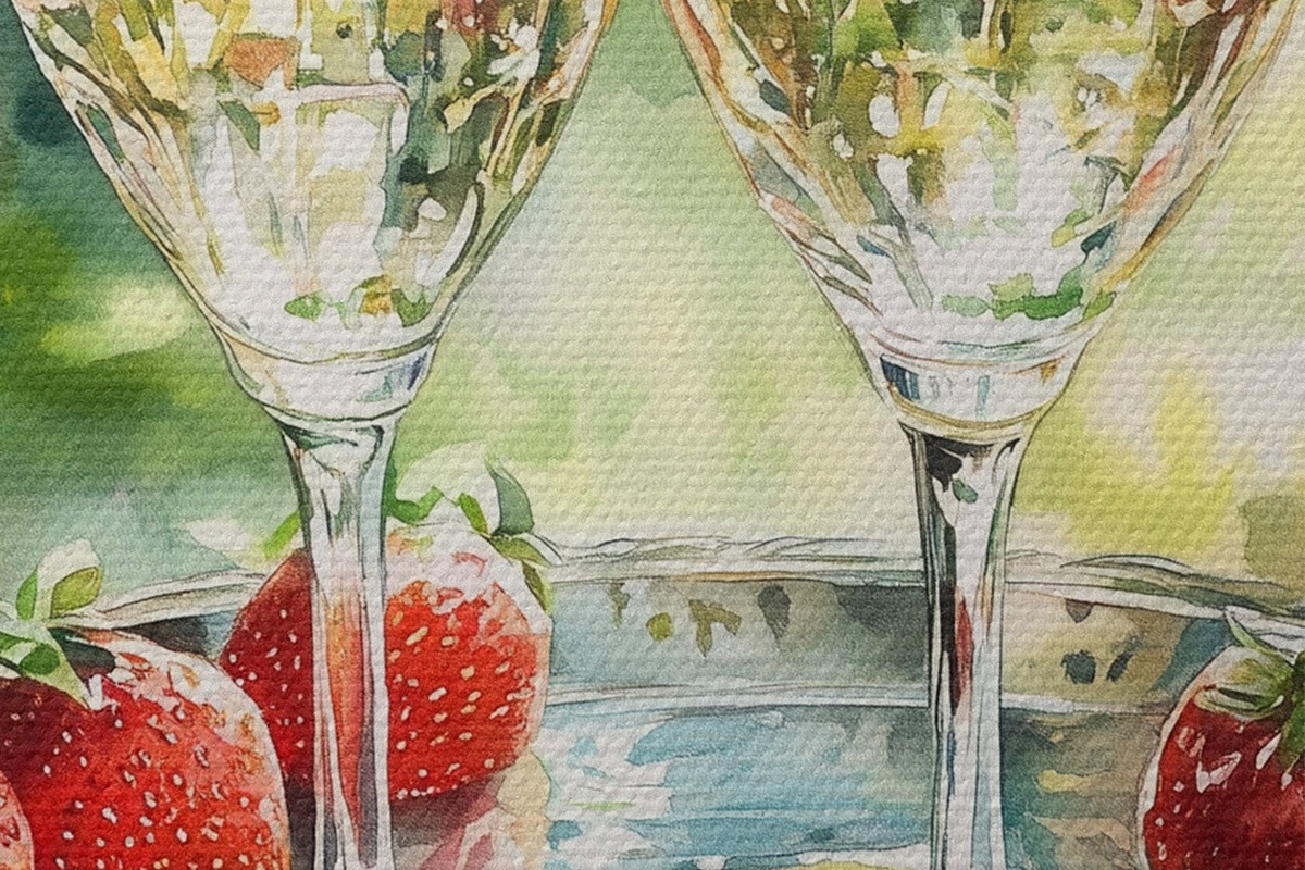 Кругла картина Літній пікнік з шампанським і полуницею, акварельний малюнок r43055