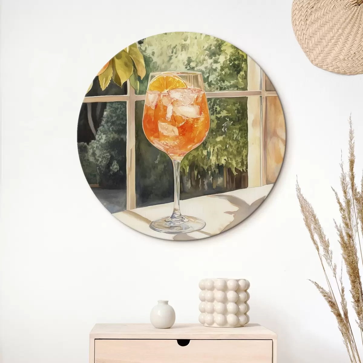 Кругла картина Смачний коктейль з апельсинами, сільський стиль, акварель, природа Nr r43060