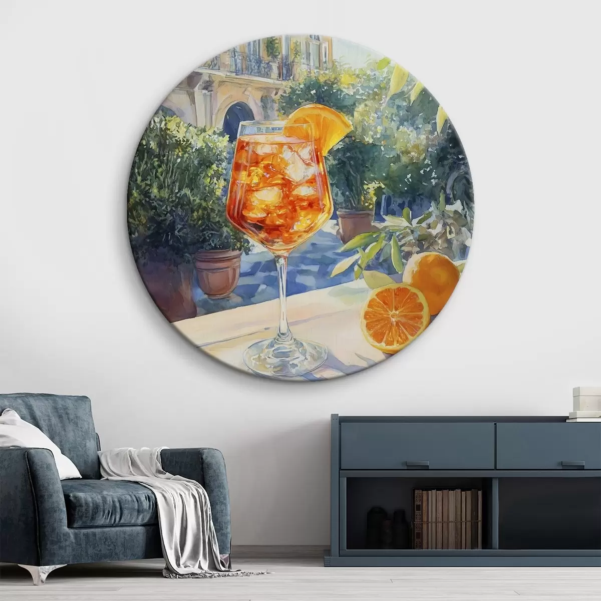 Кругла картина Коктейль з апельсинами, акварельний стиль, Італія, Aperol Spritz, архітектура, літній сад Nr r43061