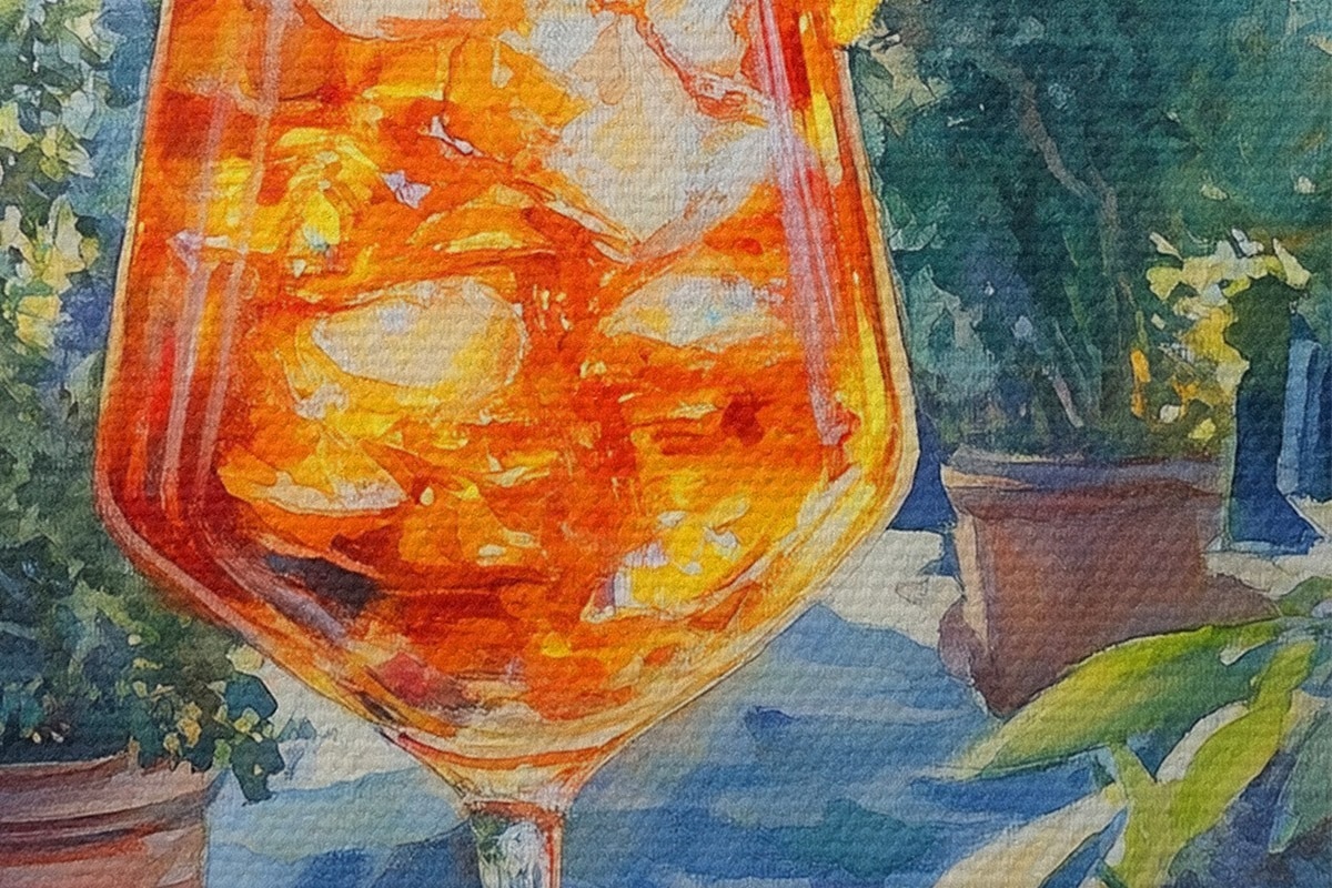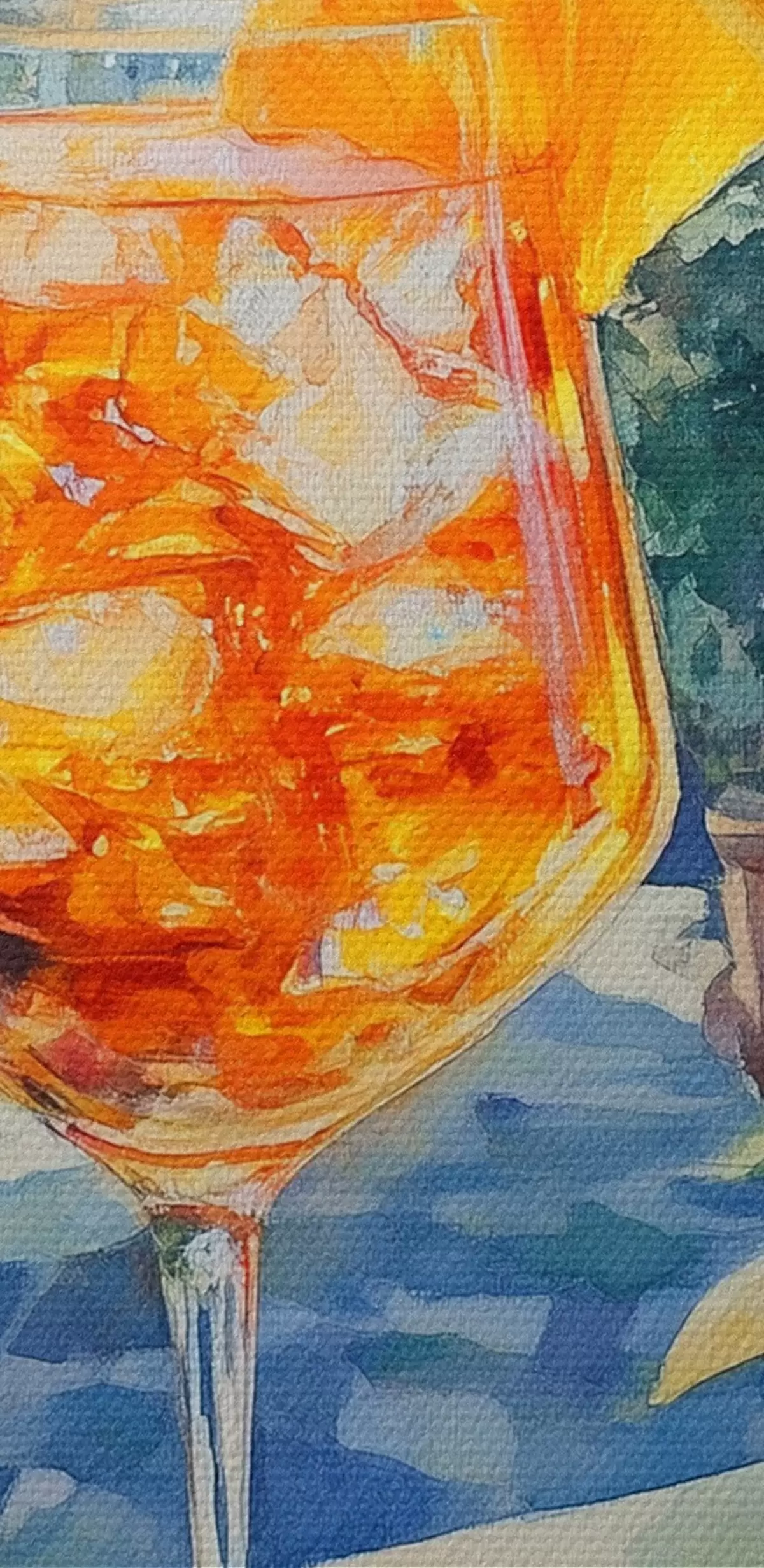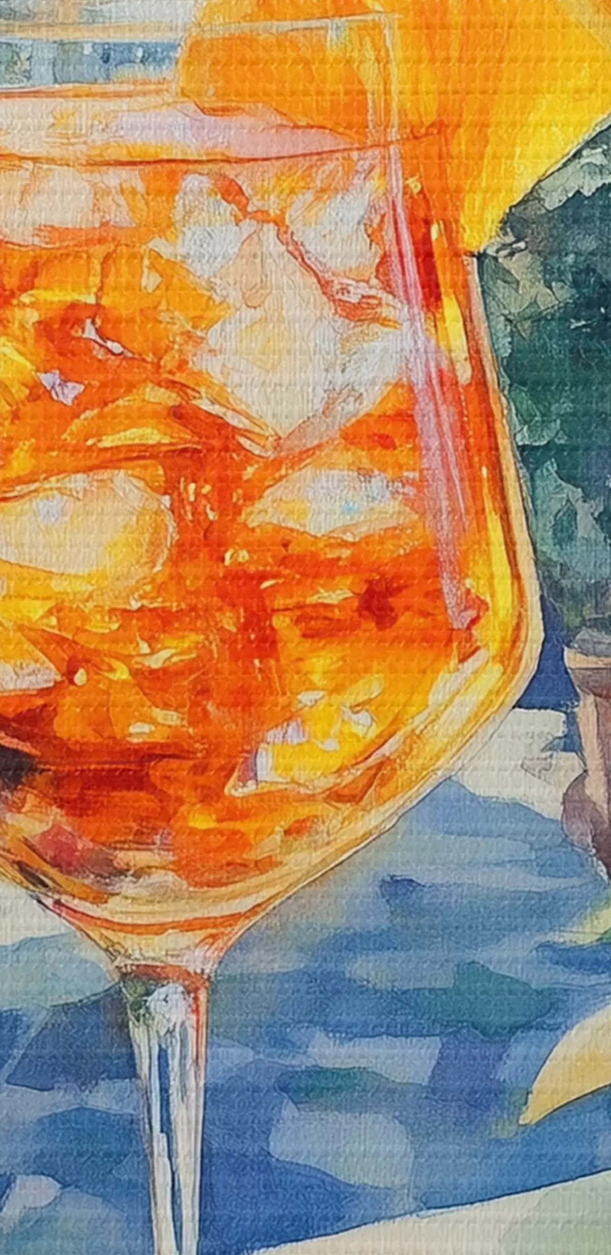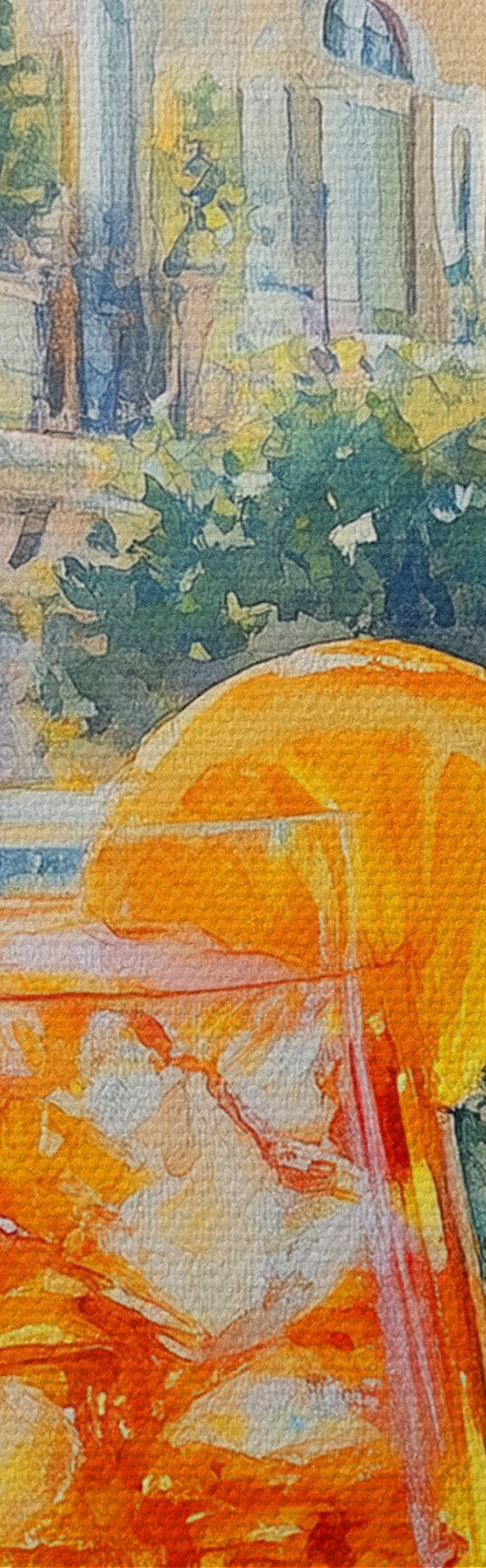 Кругла картина Коктейль з апельсинами, акварельний стиль, Італія, Aperol Spritz, архітектура, літній сад r43061