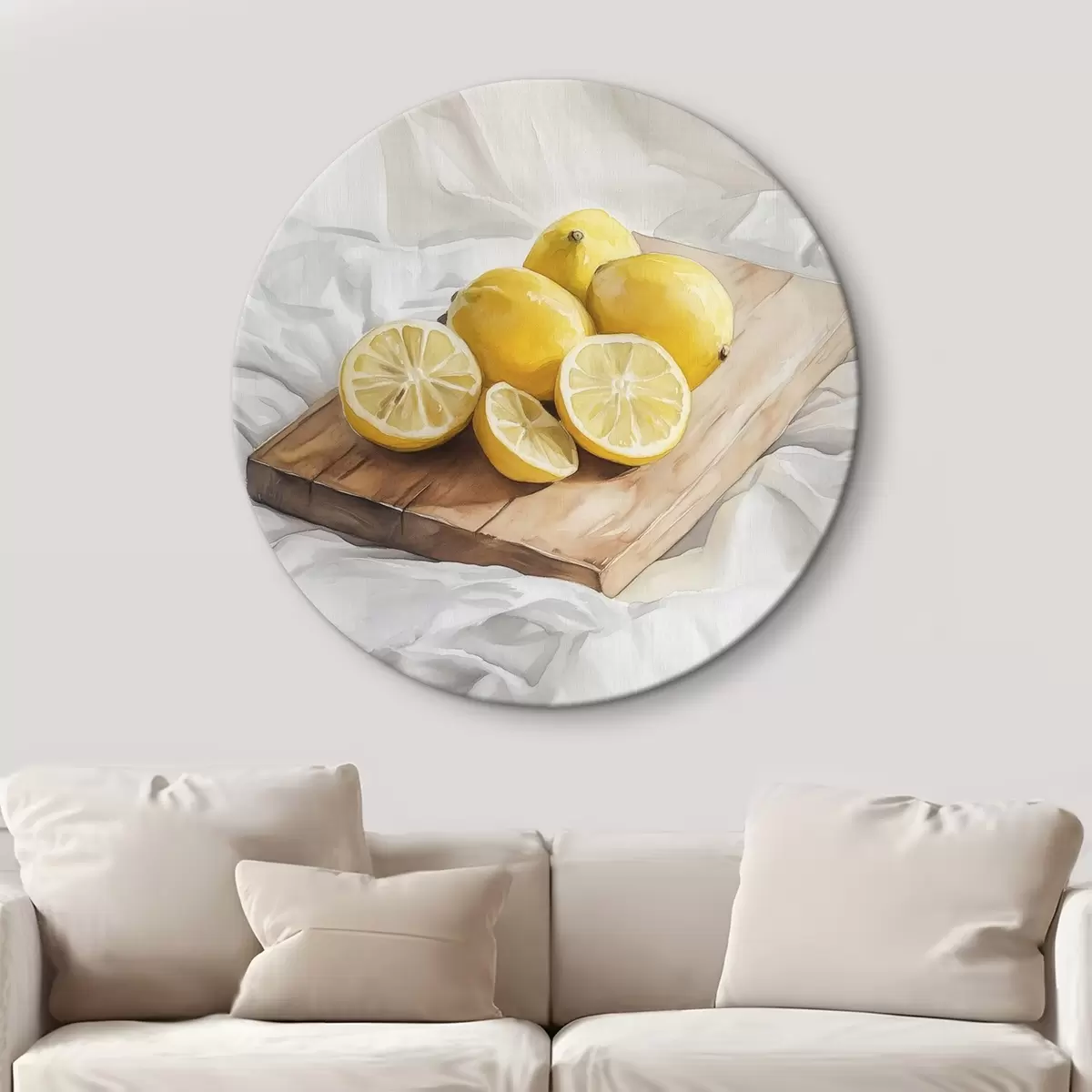 Кругла картина Естетичні лимони на дерев'яній дошці, прикраса будинку, природне освітлення Nr r43062