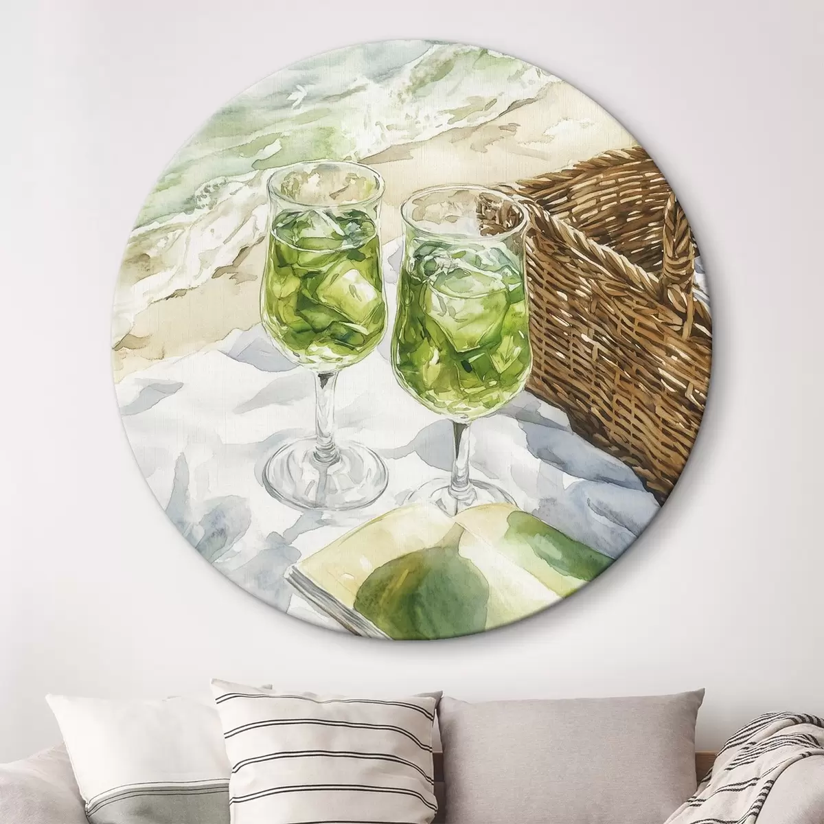 Кругла картина Коктейлі на пляжі, акварельний малюнок, океан, літо Nr r43067