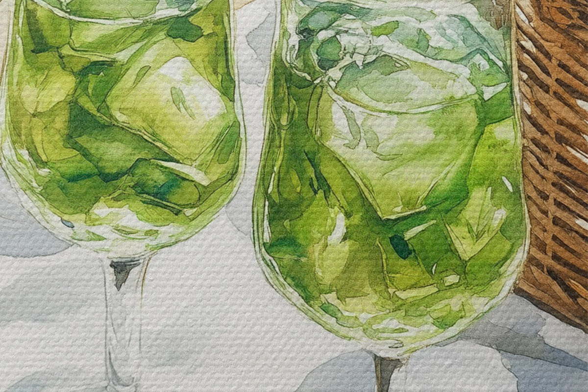 Кругла картина Коктейлі на пляжі, акварельний малюнок, океан, літо r43067