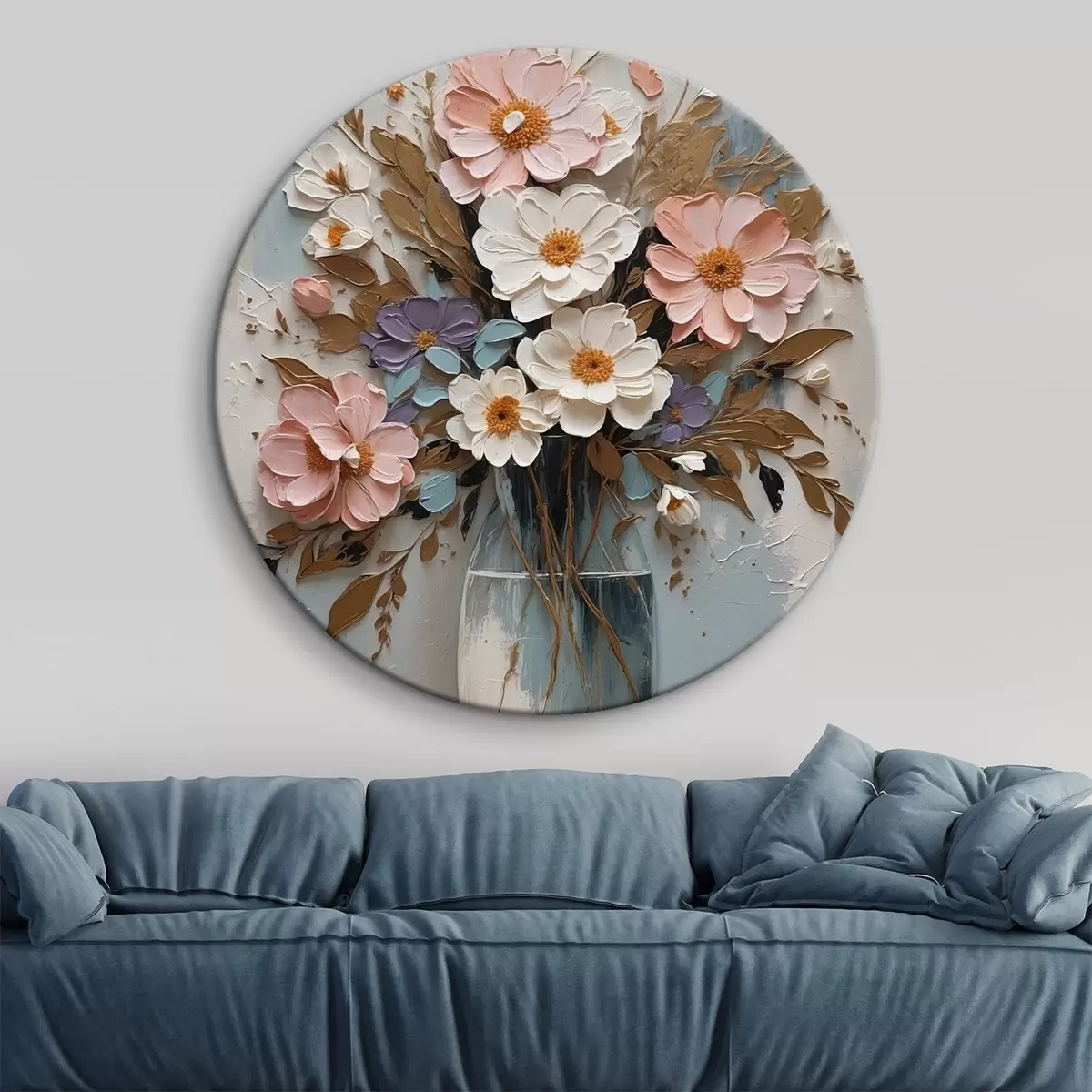 Кругла картина Рожеві та білі квіти у прозорій вазі Nr r43089