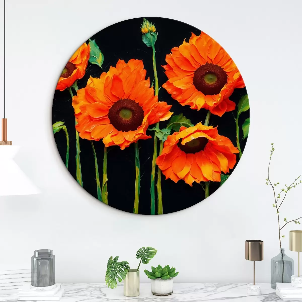 Кругла картина Червоні соняшники на темному тлі Nr r43103