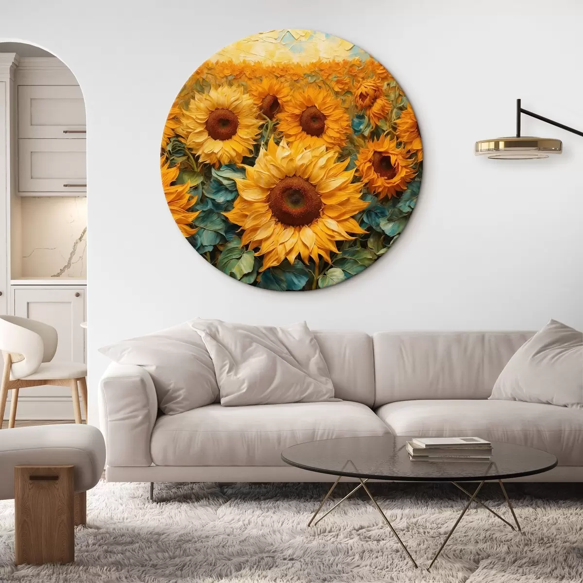 Кругла картина Поле соняшників в стилі акрилового живопису r43104