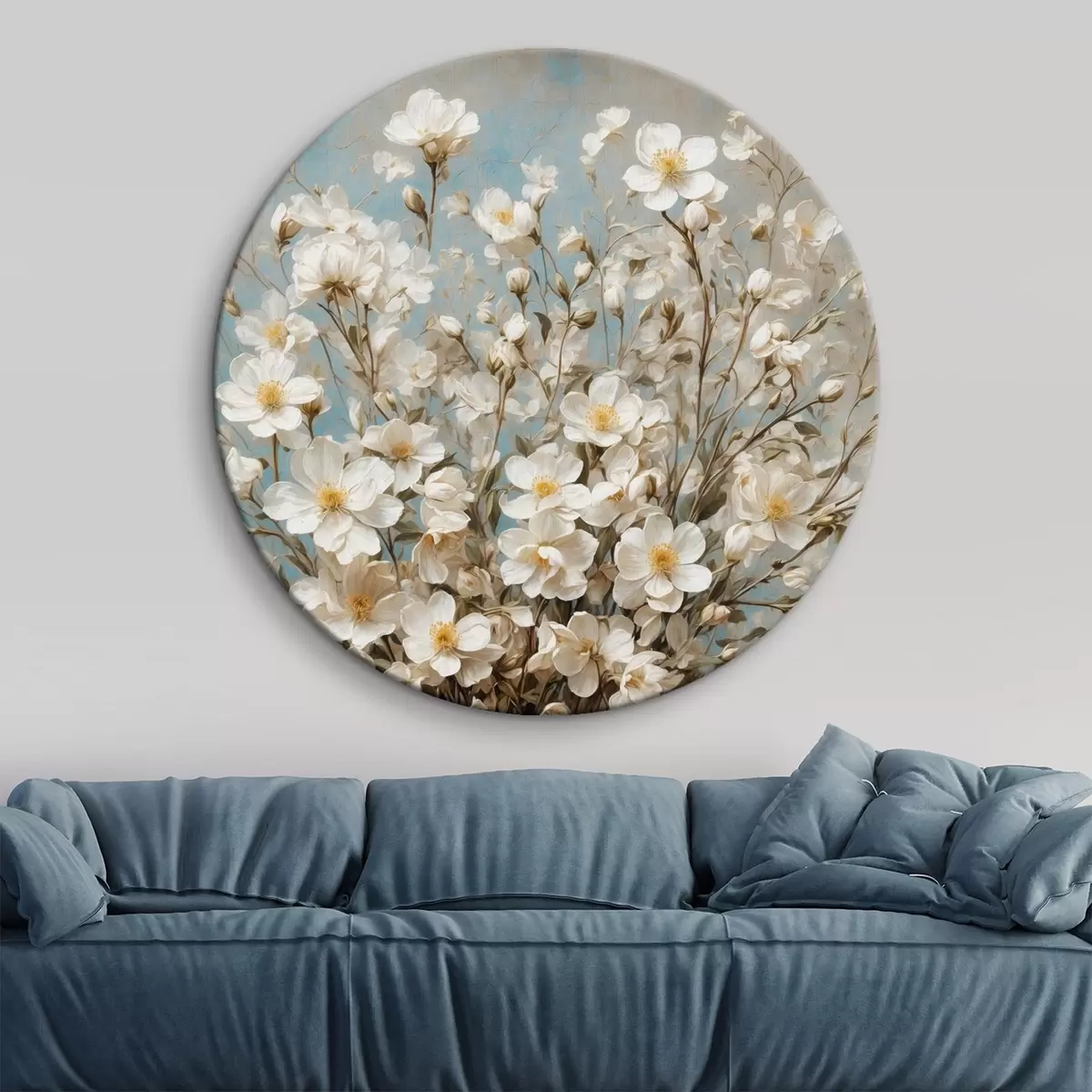 Кругла картина Білі квіти у вазі на акриловому тлі Nr r43107