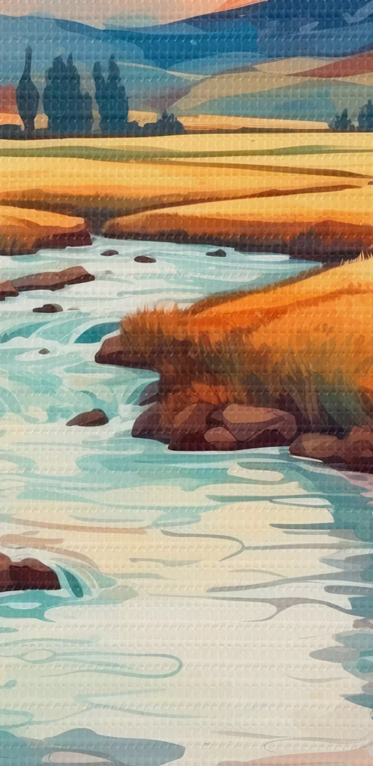 Кругла картина Струмок у полі в стилі акварельного живопису Nr r43110