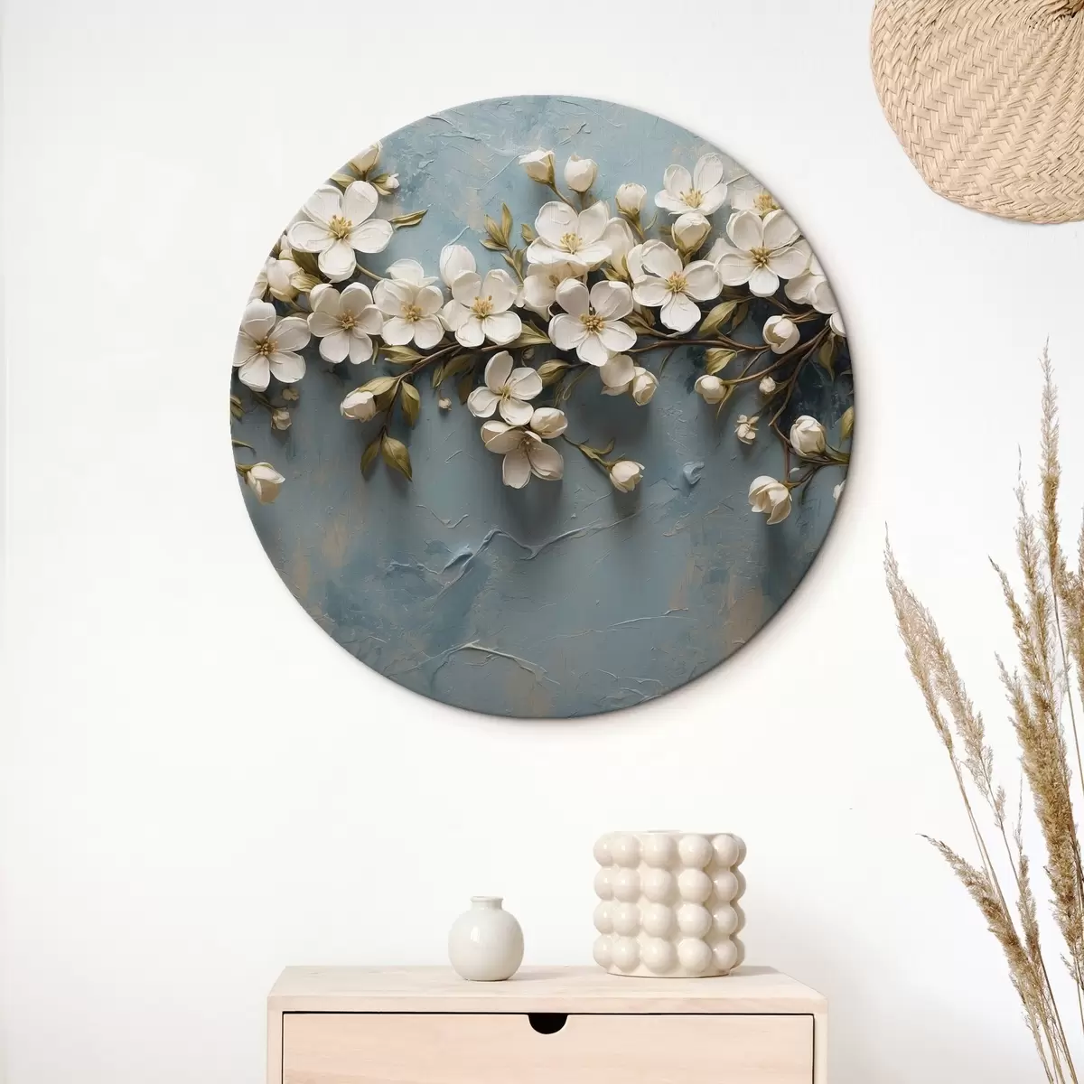 Кругла картина Гілка з квітами на тлі в акриловому стилі Nr r43111