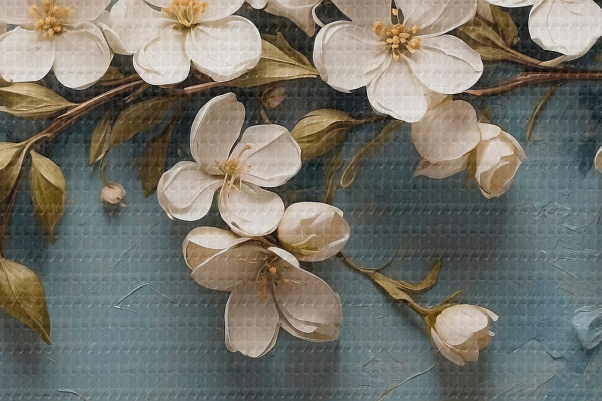 Кругла картина Гілка з квітами на тлі в акриловому стилі r43111