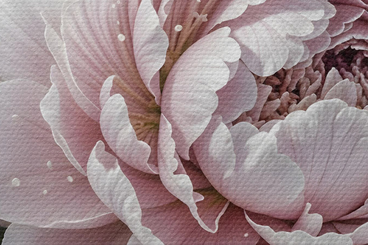 Кругла картина Світло-рожеві та білі півонії з крапельками води на пелюстках, тло - біла поверхня r43158