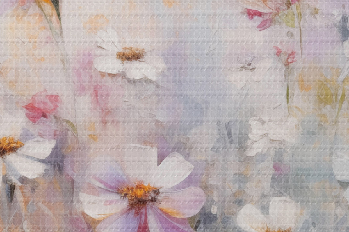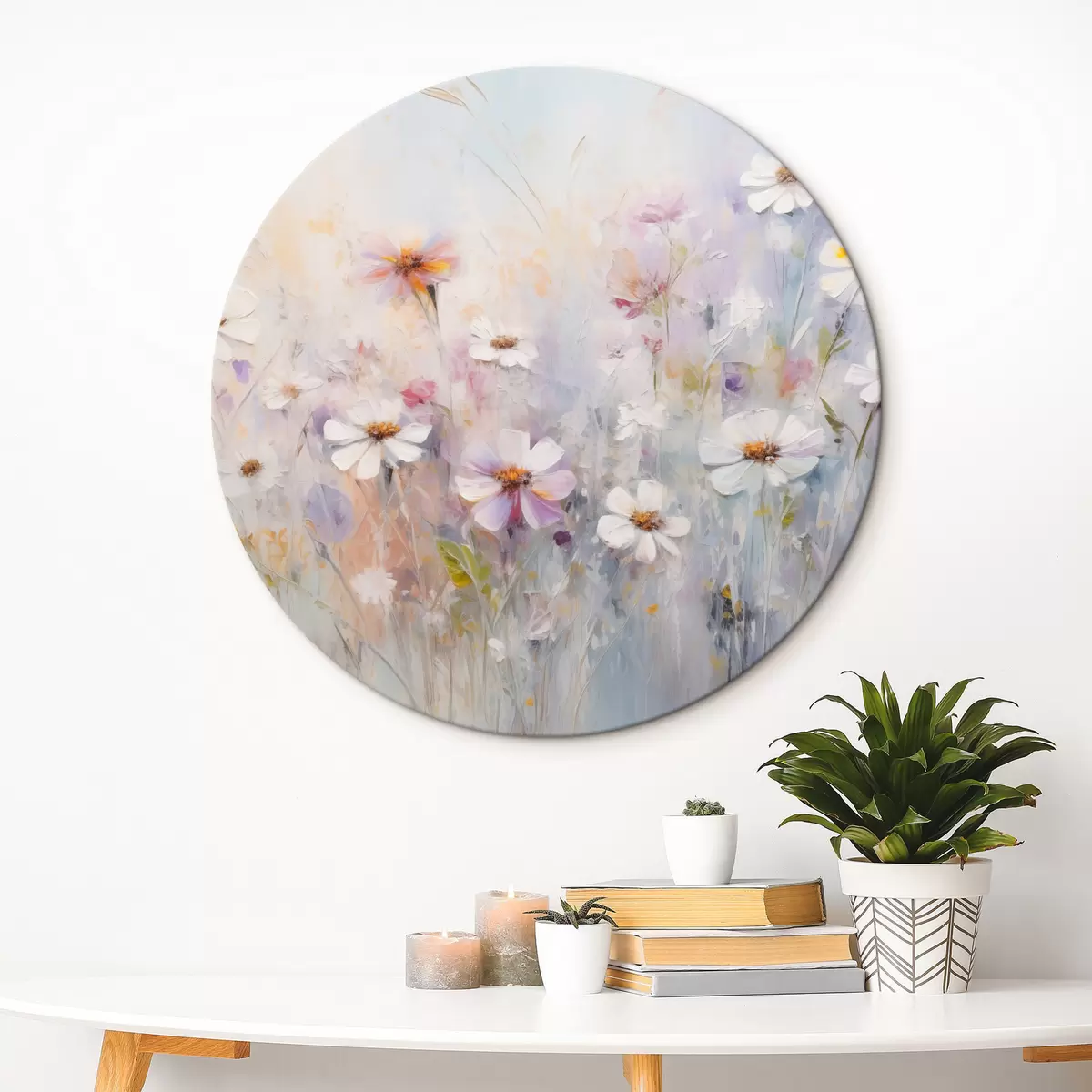 Кругла картина Абстрактне фактурне поле білих і рожевих квітів, м'які пастельні кольори, ніжні мазки, квітковий луг r43170