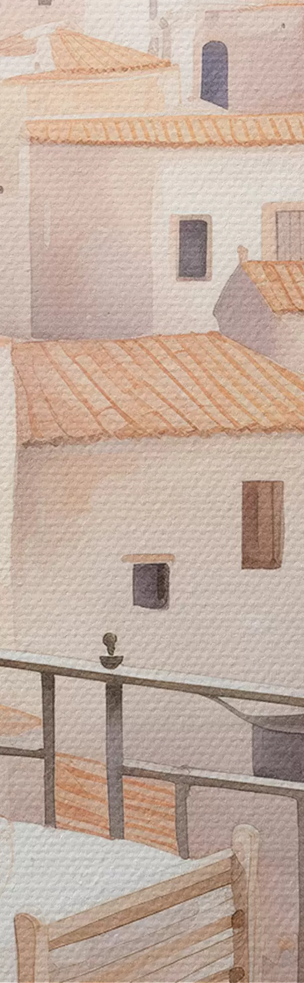 Кругла картина Захід сонця на балконі, Італія, архітектура, квітучі квіти, акварельний стиль Nr r43184