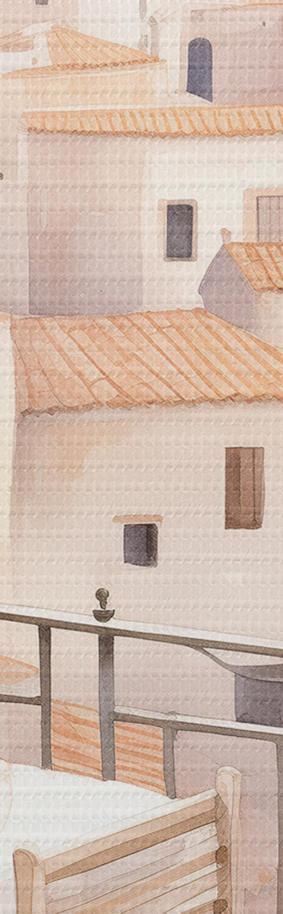Кругла картина Захід сонця на балконі, Італія, архітектура, квітучі квіти, акварельний стиль r43184