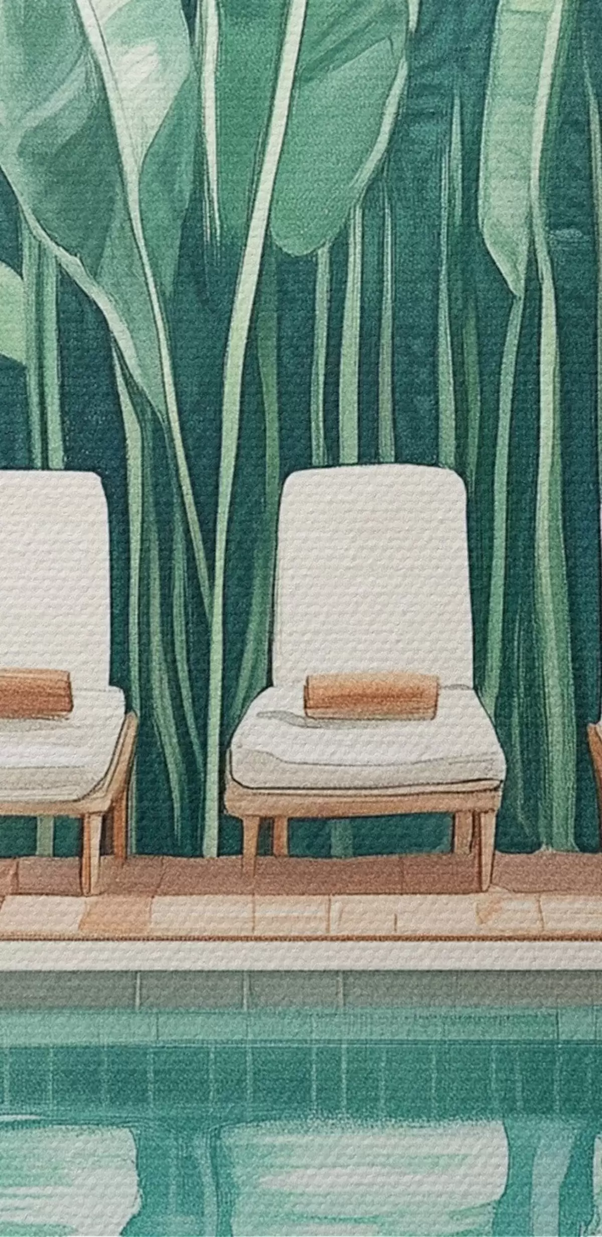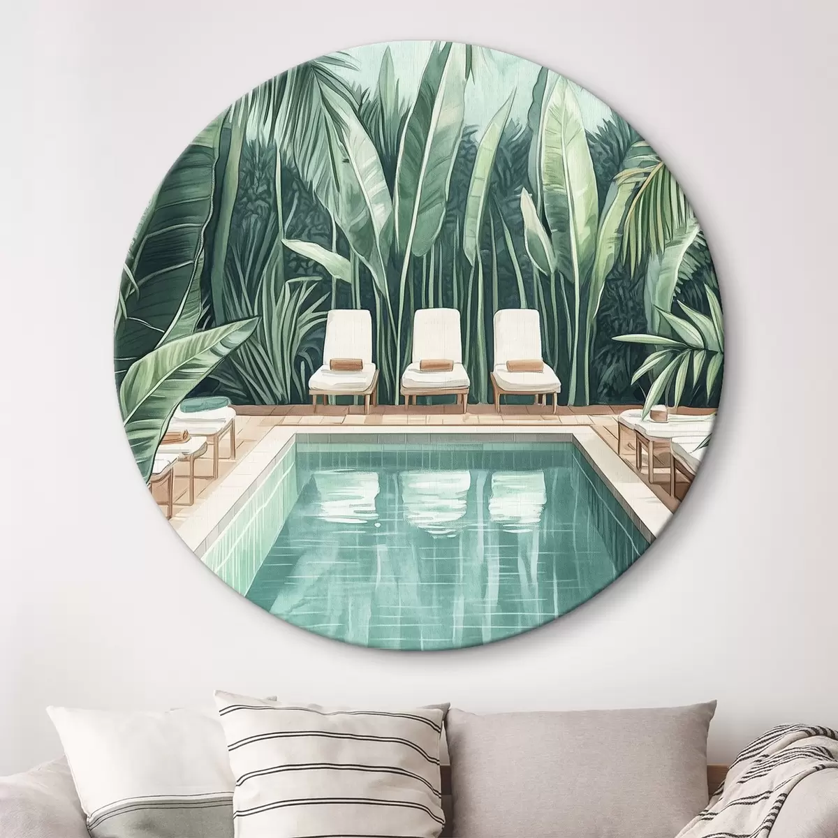 Кругла картина Естетичний літній басейн в тропічному саду, акварельний стиль Nr r43192