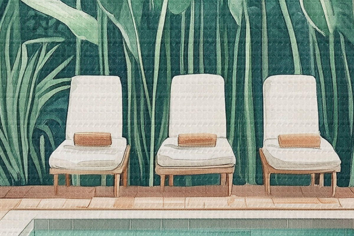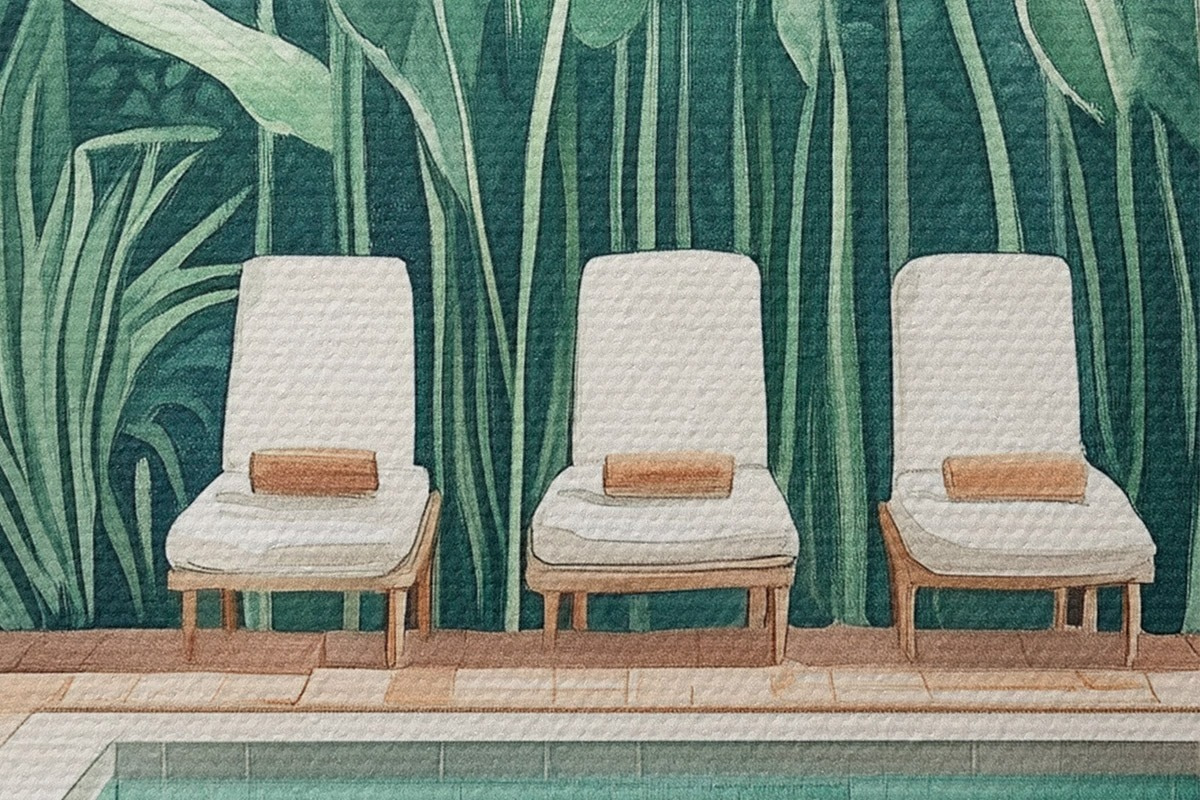 Кругла картина Естетичний літній басейн в тропічному саду, акварельний стиль r43192