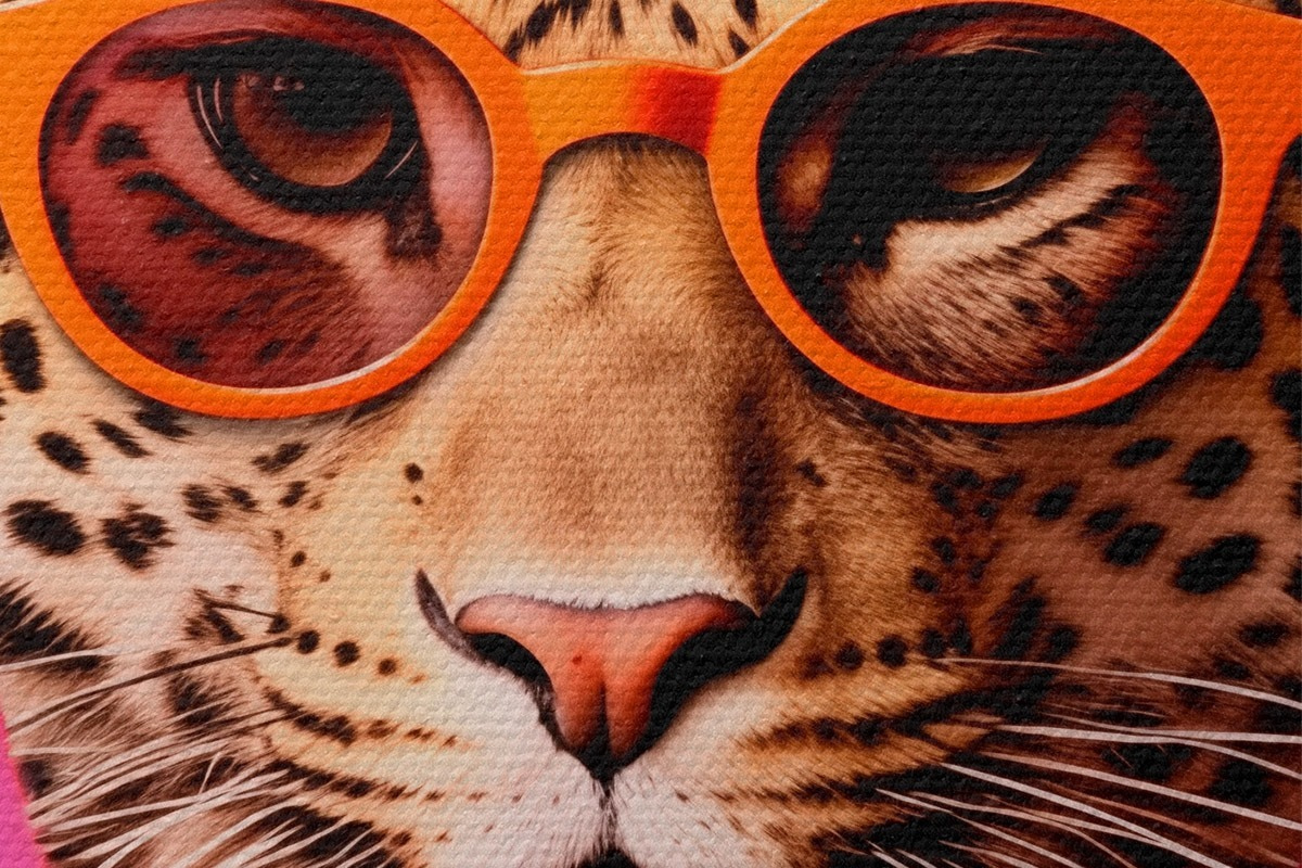 Кругла картина Стильний леопард у квітковому костюмі r43267