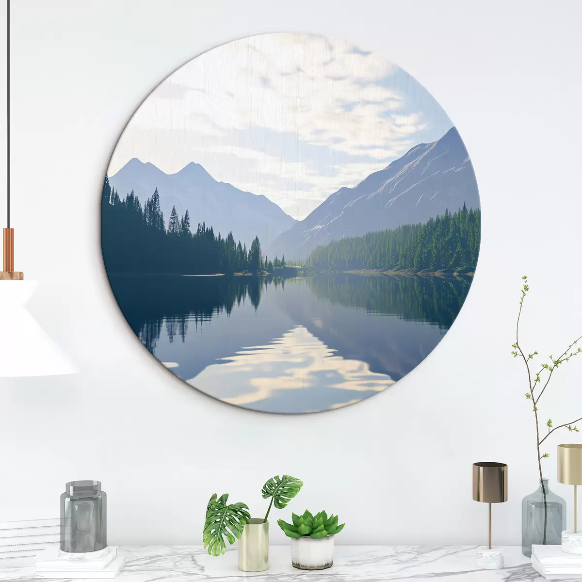 Кругла картина Озеро біля гір r43288