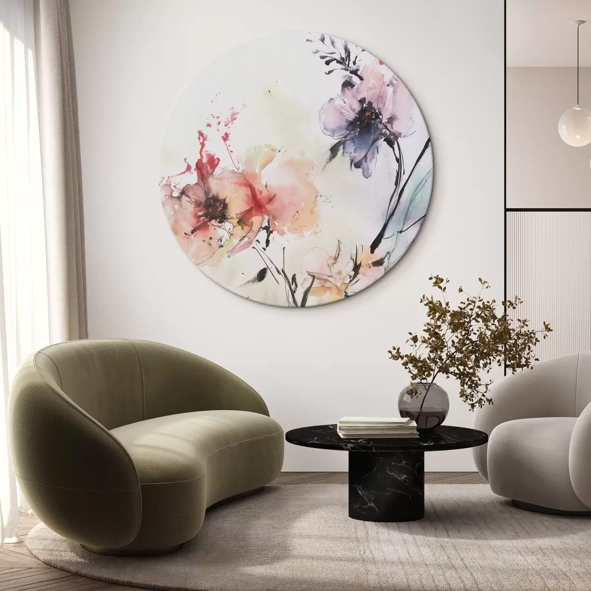 Кругла картина Квіти в стилі акварелі Nr r43295