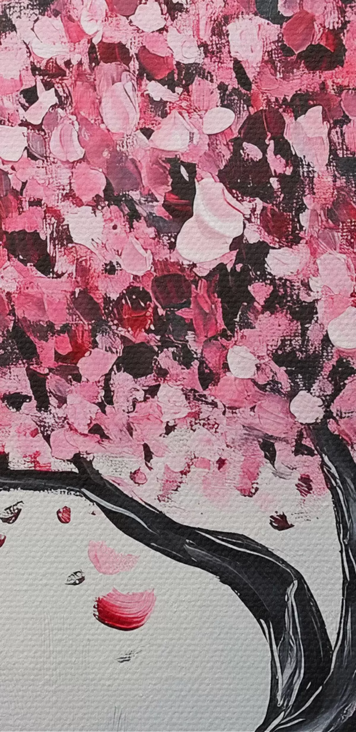 Кругла картина Рожеве квітуче дерево на сірому тлі r43299