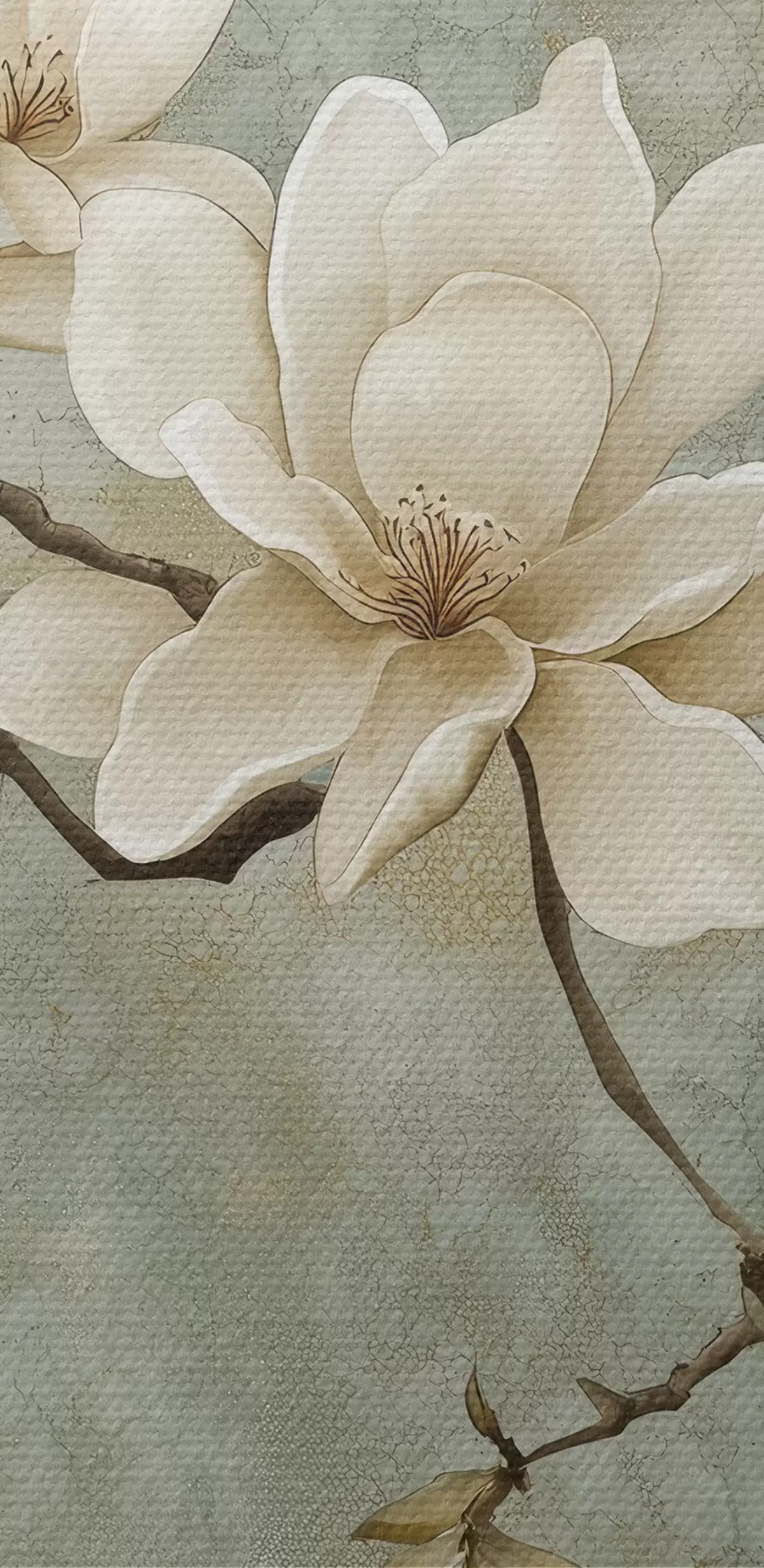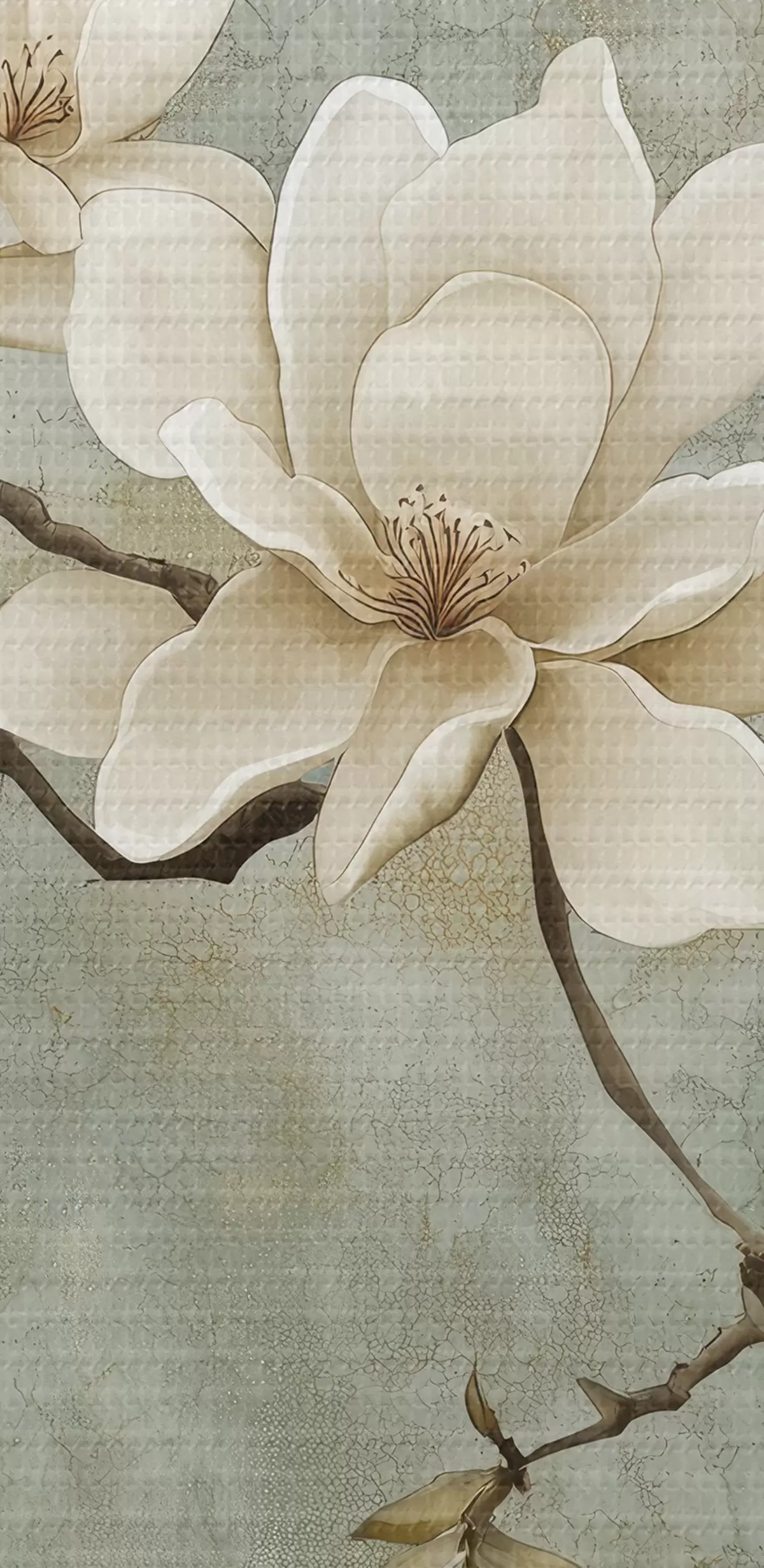 Кругла картина Гілка магнолії на пастельному гранжевому тлі r43322